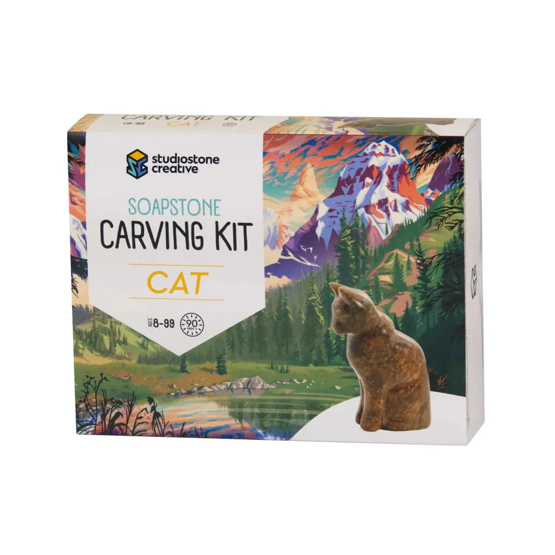 Discover the joy of crafting your own soapstone cat sculpture with Studiostone Creative, an engaging and artistic experience suitable for both adults and children ages 8 and above. Our premium craft kits are meticulously crafted in the scenic landscape of British Columbia, Canada, featuring eco-friendly packaging and natural materials.