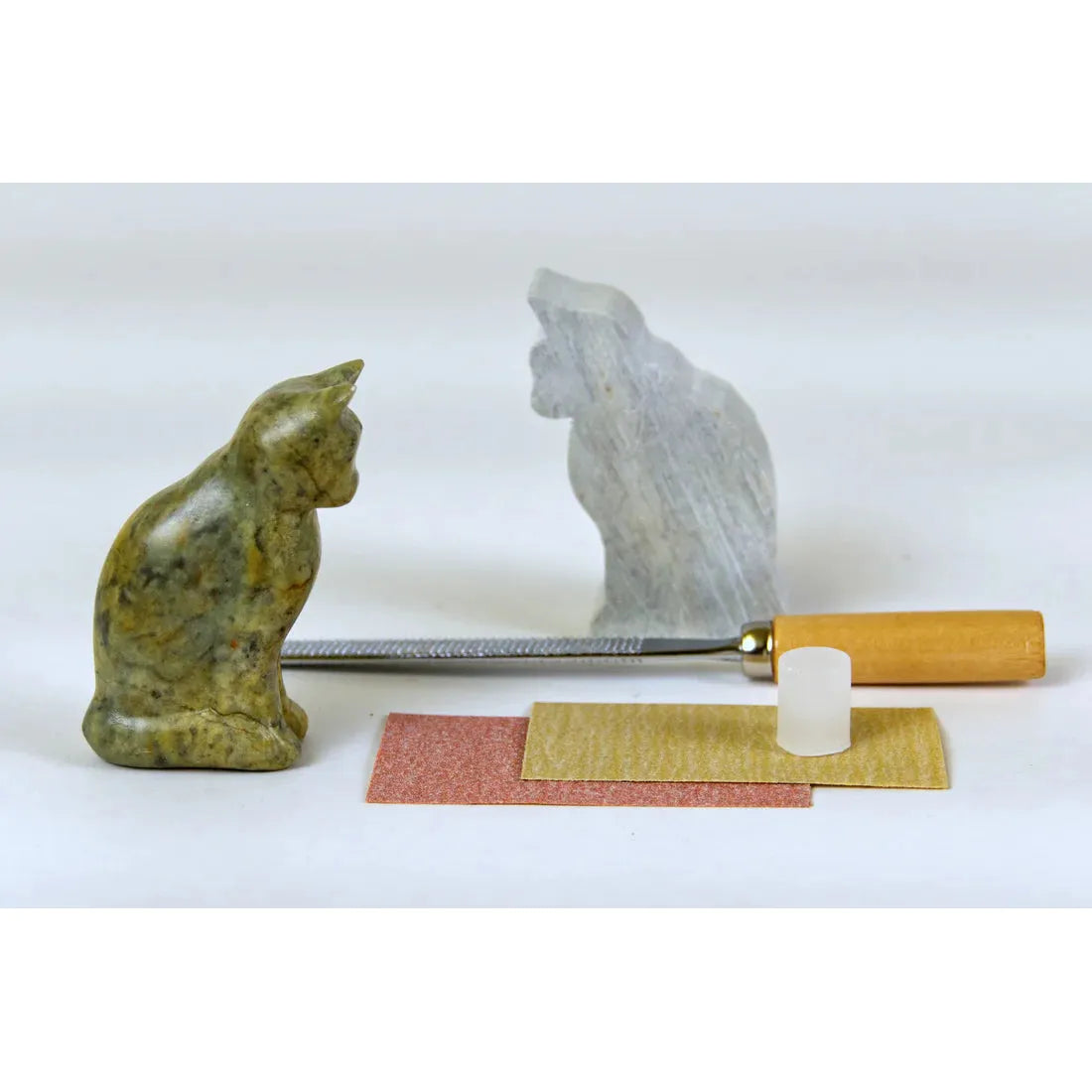 Equipped with easy-to-follow step-by-step instructions, othese kits include everything you need to create a stunning 3D art masterpiece: a meticulously hand-cut cat soapstone shape, a kid-safe carving file, two grades of sandpaper for precision, polishing wax to achieve a brilliant finish, and a buffing cloth for the final touch.