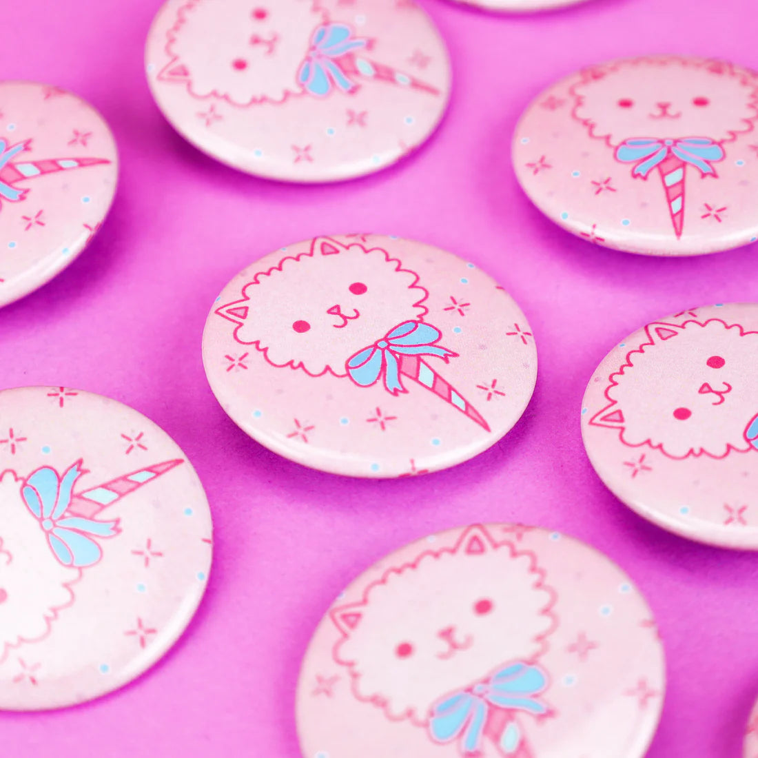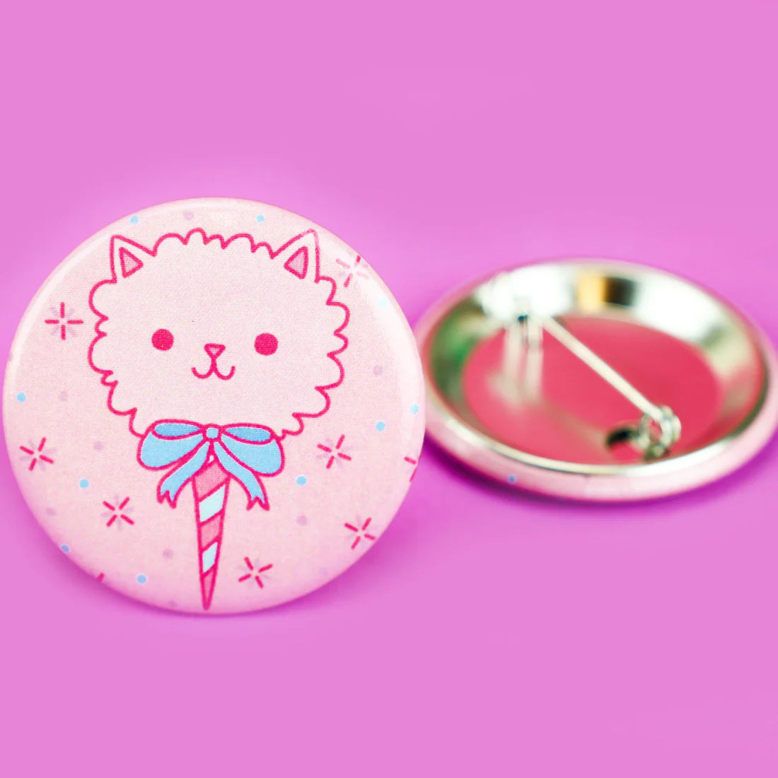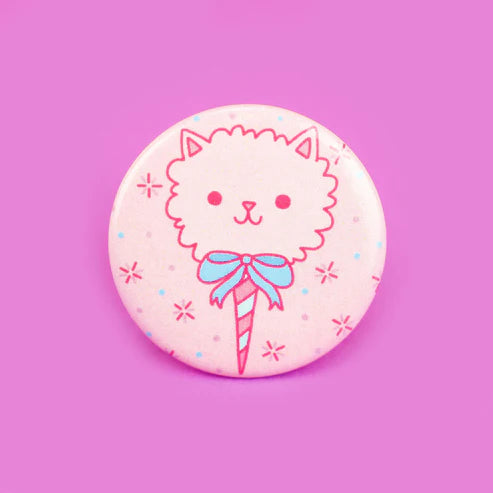 This meowgical cotton candy cat is the purrfect snack and the purrfect pet! Cute, soft, and tasty, you can now show off this sweet treat to all of your friends on a pinback button. Let everyone know you’re a fan of all things sugar and all things cat!