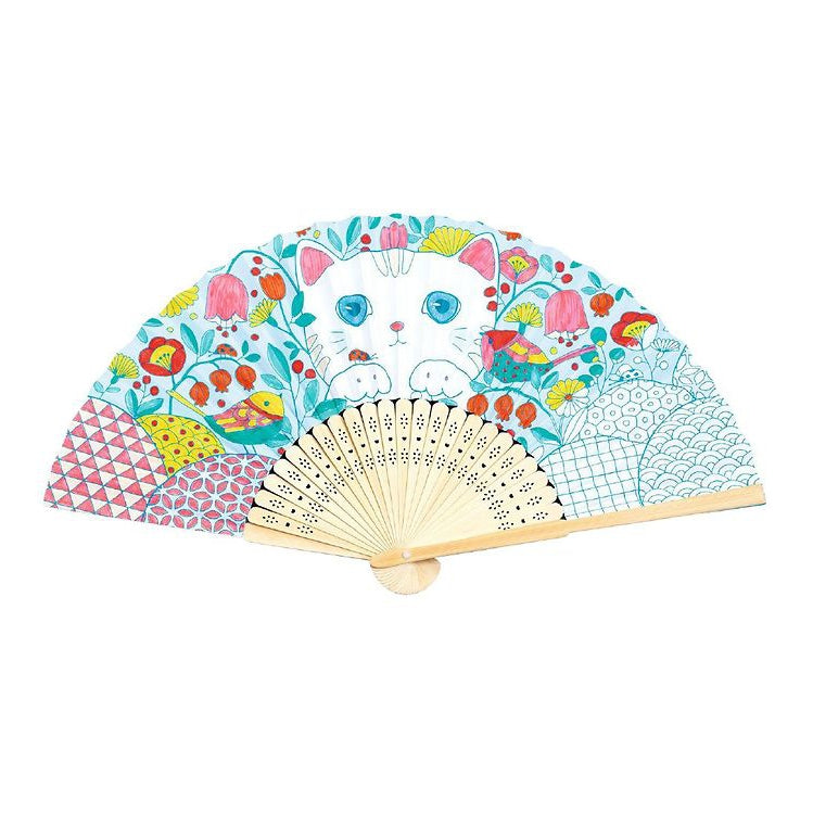 Your crafty kiddo's creativity will ignite with this kit to colour in a gorgeous Japanese style fan. Koneko means kitten in Japanese and this fan has a super cute illustration of a kitten and florals to colour. Use pencil crayons or fine tip markers of your choice and when you're done you can store the fan in the beautiful storage case that can also be coloured.