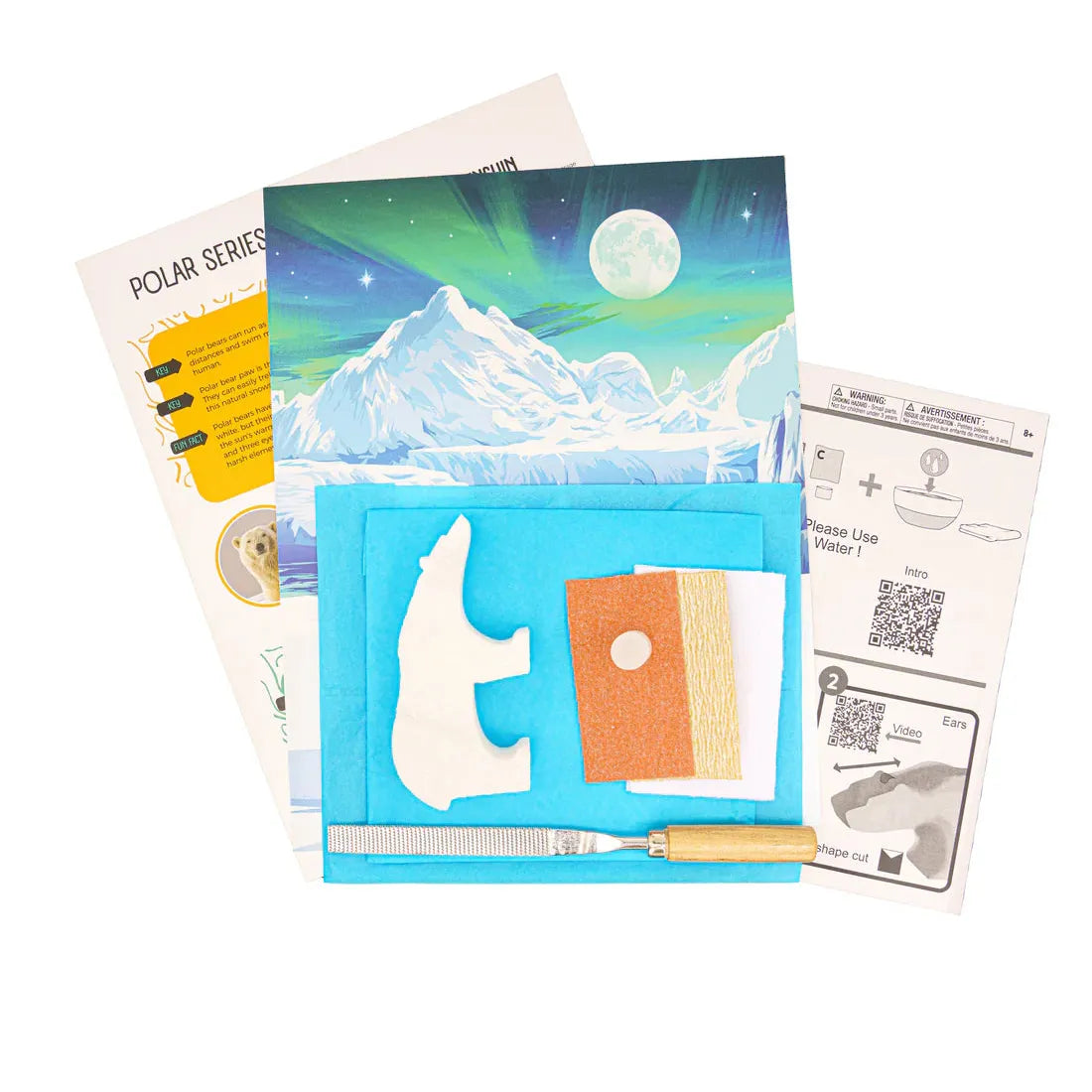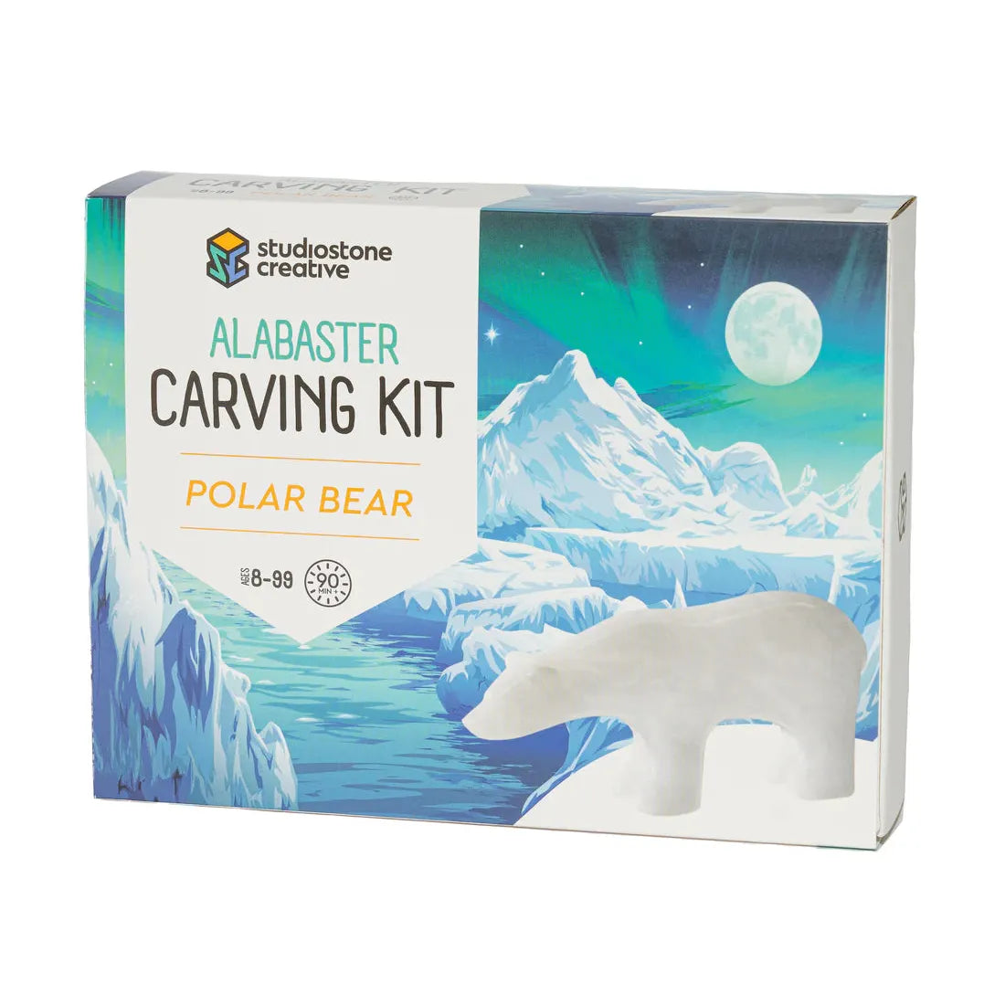Try these new Alabaster stone carving kits.  Alabaster is a semi-translucent stone from Spain and finishes a beautiful white. Use water to shape the stone with all supplies included in our premium level kit.