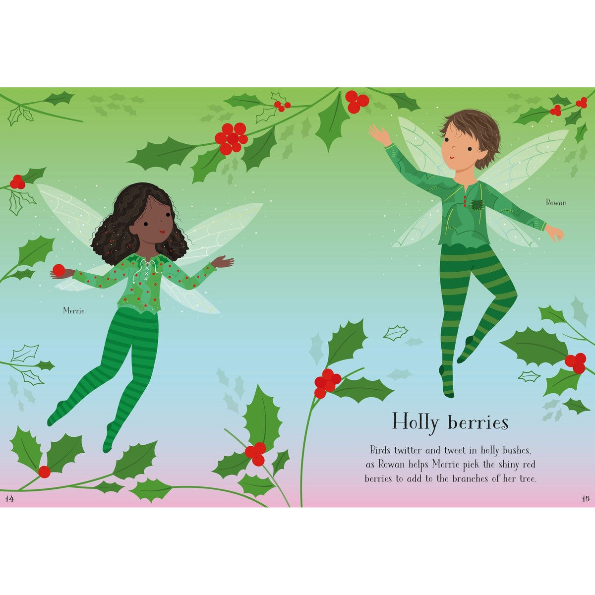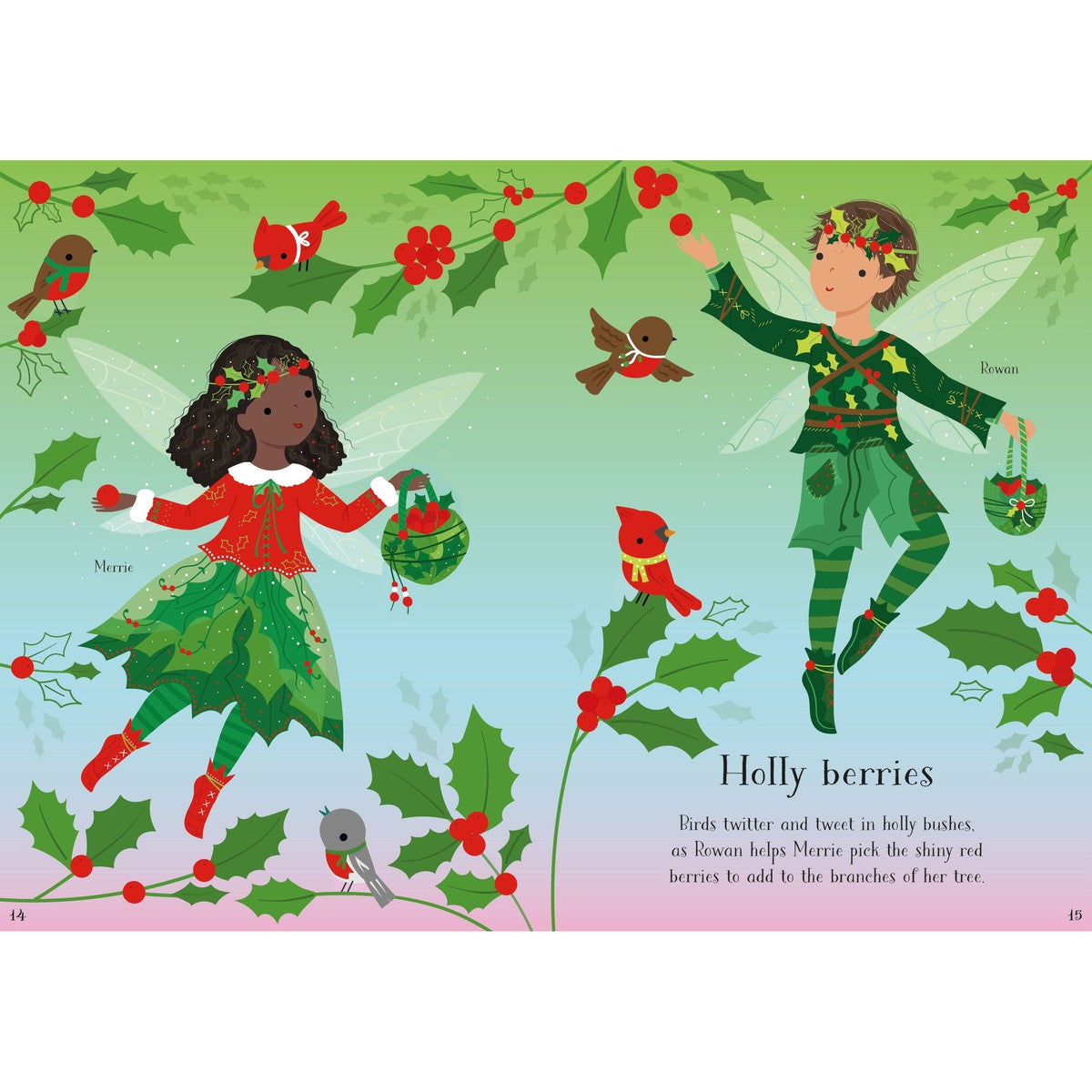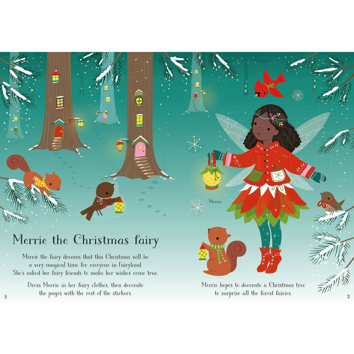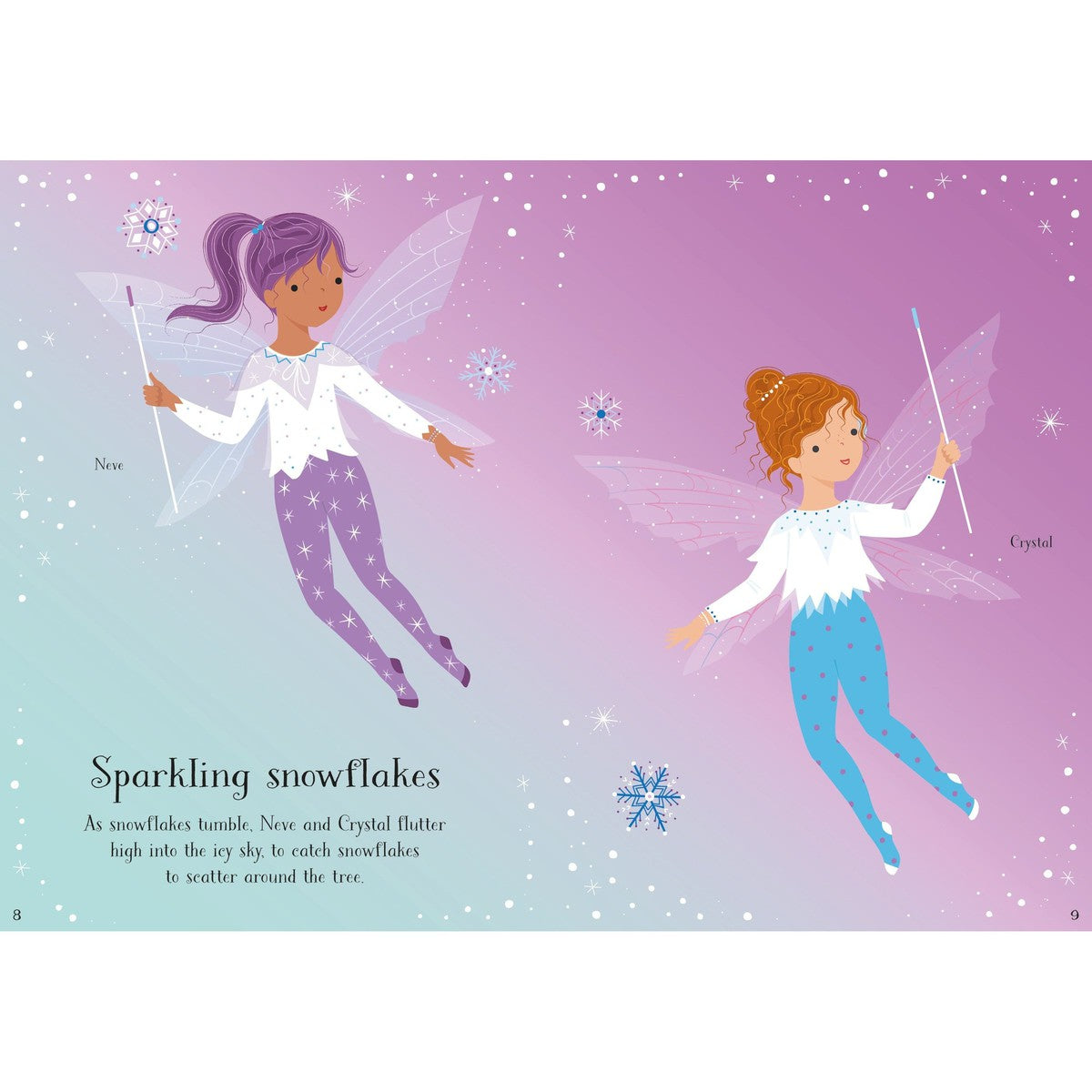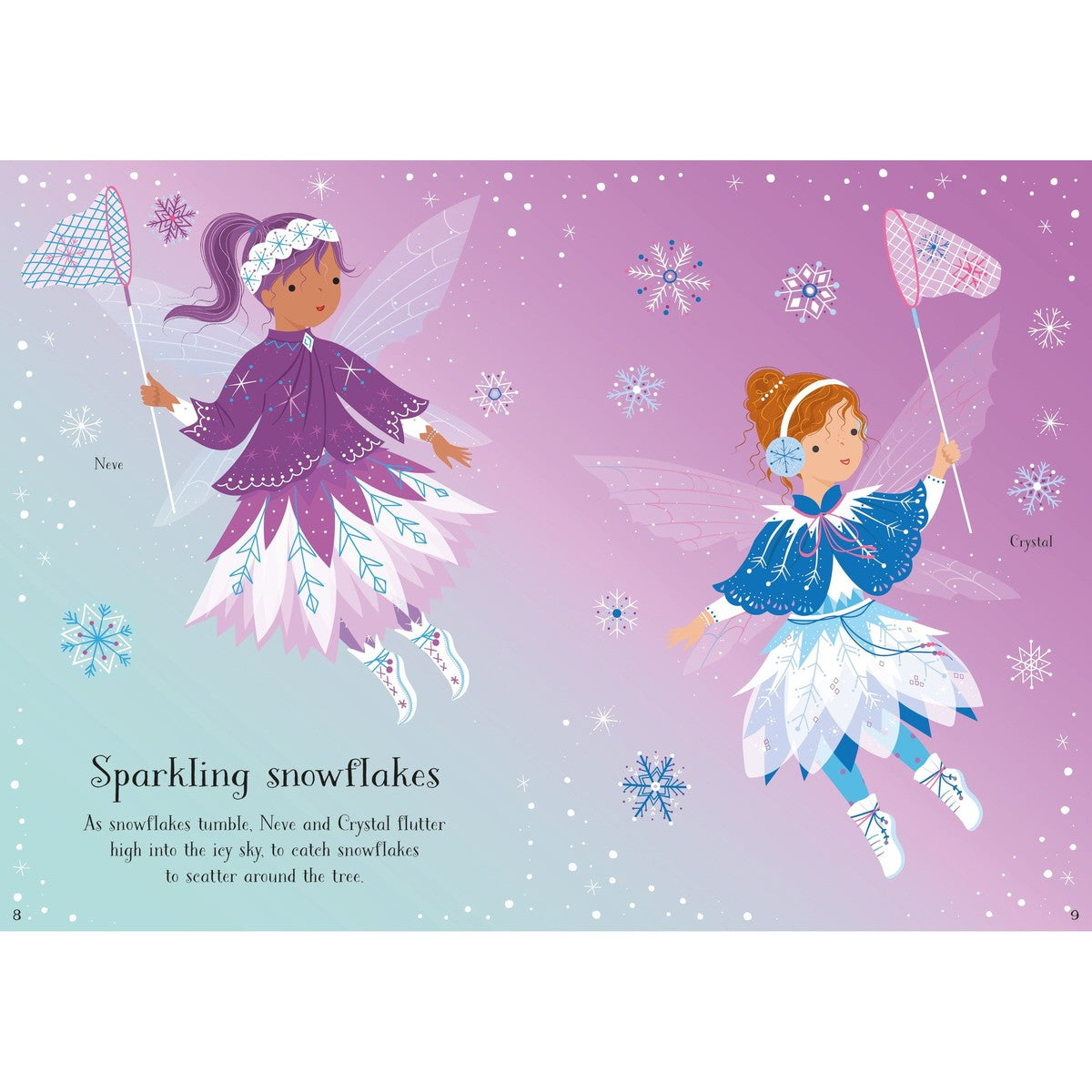 Fly with the Christmas fairy as she flutters around Fairyland with her woodland friends. Use the stickers to dress the fairies and decorate the delightful wintery scenes.