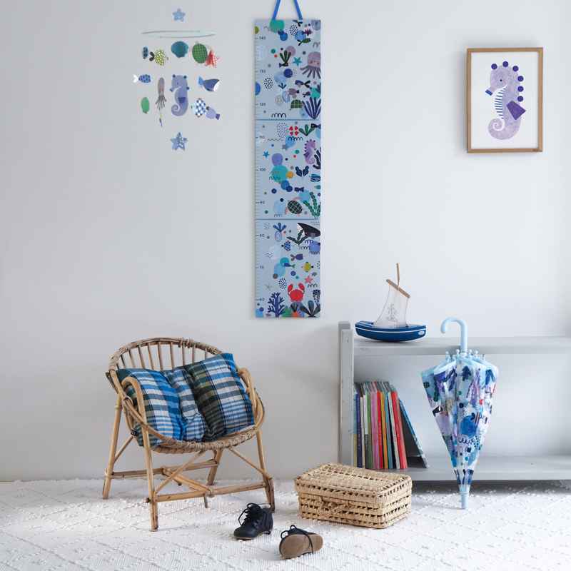 Chart your little one's growth all throughout their childhood with this illustrated height chart. This chart is made from FSC-certified cardboard and hangs on the wall with an attractive ribbon so you can easily move it to a new room or house without losing these treasured memories. Keep track of birthdays and special occasions using the included stickers.