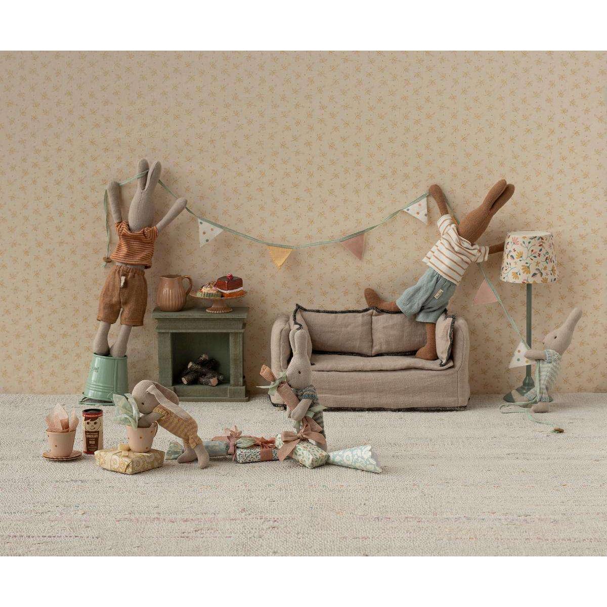 This miniature bunting garland is the perfect decoration for any season in your Maileg House of Miniatures. Put it in the living room or hang on the terrace for an outdoor fest — you decide! Has 7 mini fabric flags and measures 85cm.
