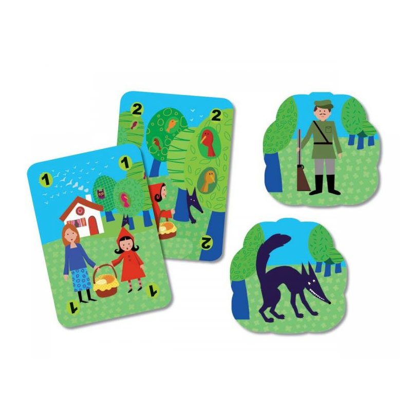 Boost observational skills, memory, and conversation skills while engaging in this fun strategy game with your kiddos. Based on Little Red Riding Hood, this is a clever strategy game with all the characters from the beloved fable. The goal is to collect all 6 story cards — but make sure to watch out for the wolf! This game is playfully illustrated, sturdy, and easy to take along anywhere.