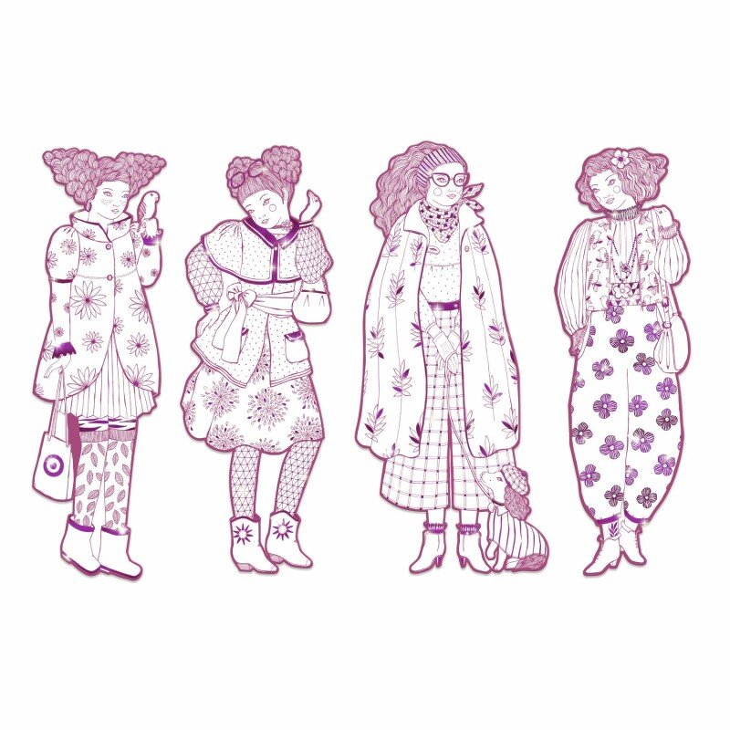 Adorn your own parade of fashionable ladies with these large-scale colouring cut-outs. A twist on the classic paper dolls, these die-cut silhouettes are 32cm tall with metallic details for you to colour-in, customize, and express your creativity.