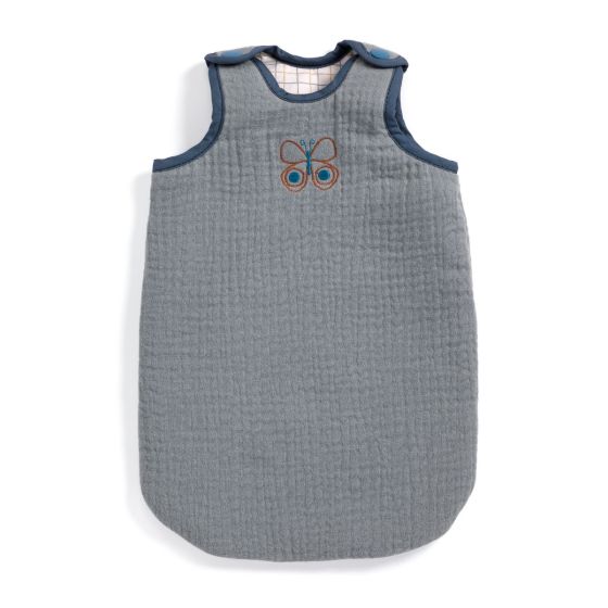 Tuck your baby doll in for a cosy sleep in this quilted sleeping bag. Dolls are fantastic for emotional development through play and nurturing and this sleeping bag will adapt to years of imaginative play with your child. Made of soft quilted cotton with embroidered double gauze on the outside and lined with soft printed cotton. Hook and loop fastening straps on the shoulders keep your dolly snug and secure.