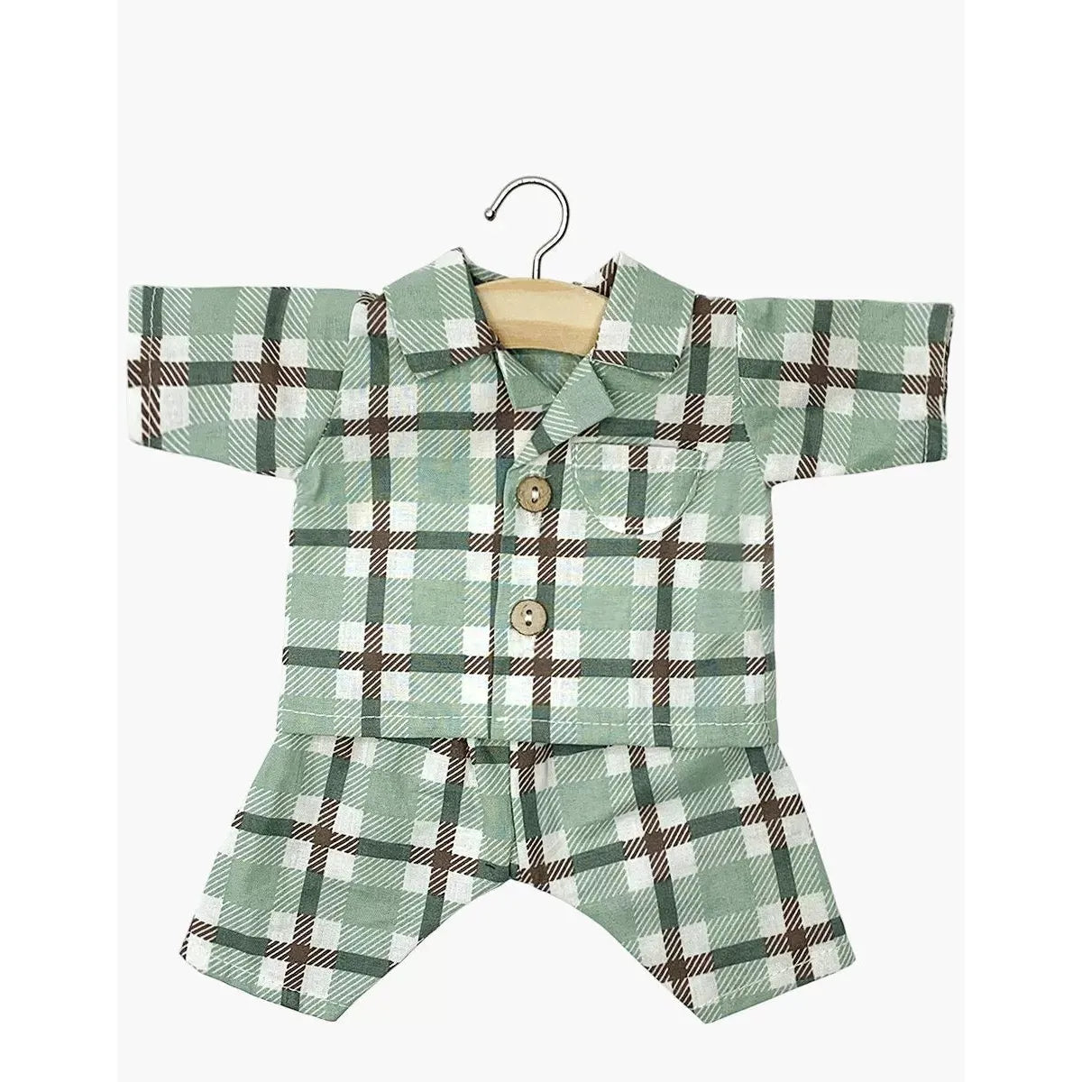 Minikane albert green/brown tartan check cotton pajamas