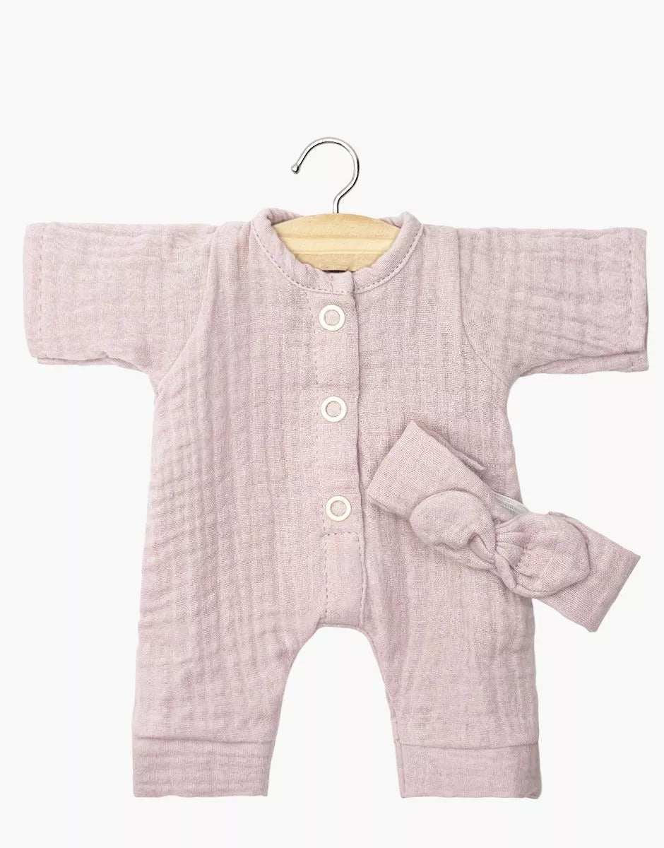 Minikane Babies – Lili jumpsuit and headband in orchid pink cotton gauze
