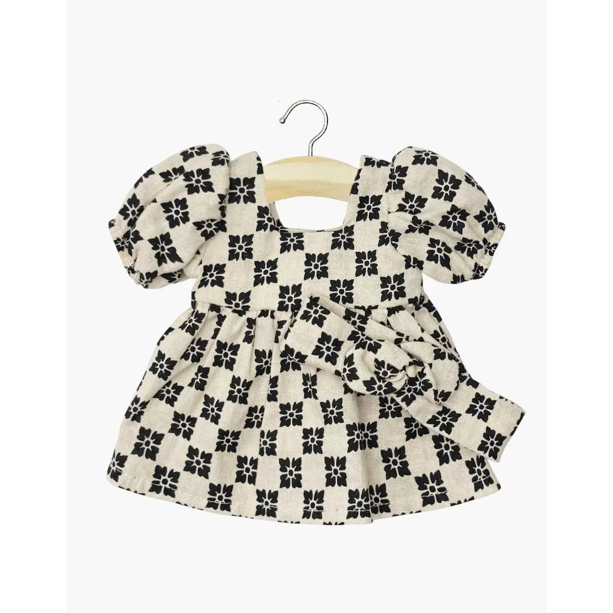 Minikane Gordis - fiona dress and headband with round bow in black/white checkered graphic crepe