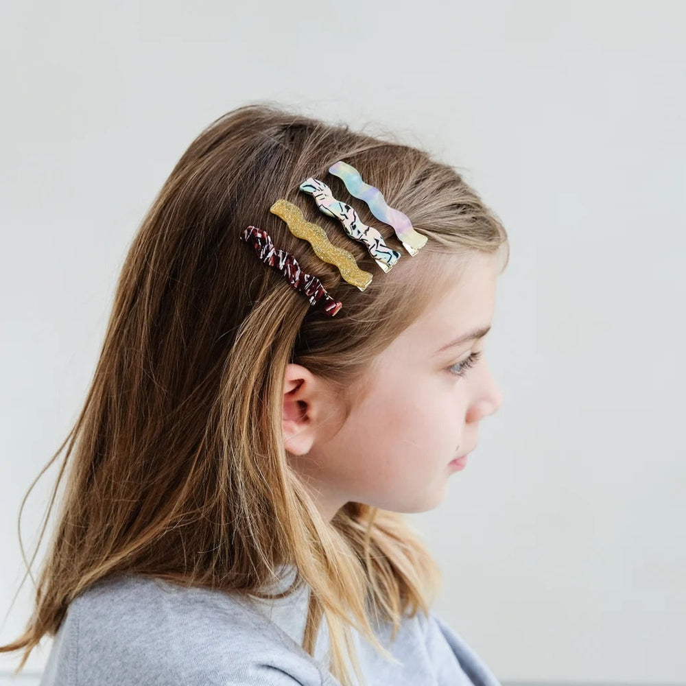 These seriously cool wavy acetate clips come in a pack of four and are fab for sweeping back stray hairs. These are also great for thicker hair, and would work in adults hair too in case you fancy borrowing!