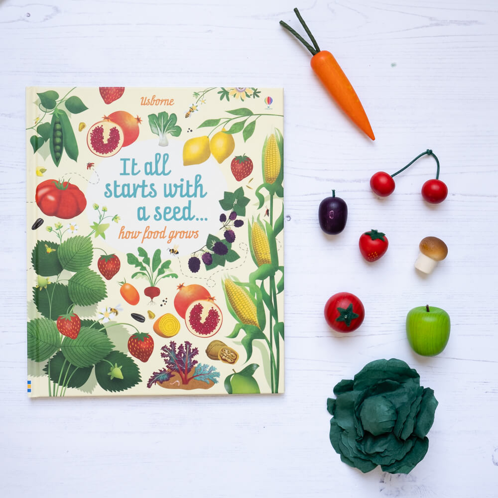 Playing with whole foods like fruits, vegetables & grains encourages kiddos to value healthy foods.