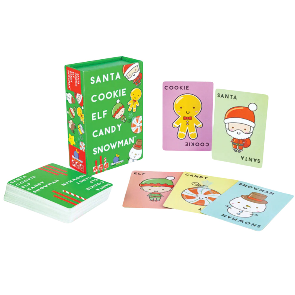 Bring some festive chaos to your family game night with Santa Cookie Elf Candy Snowman! This is the Christmas themed edition of the wildly popular hand-slapping party game, Taco Cat Goat Cheese Pizza! Say the next word in the pattern and flip a card - if it matches, everyone slaps the pile! Special cards add extra fun. This festive game includes new cards and special actions to add to your game night merriment.