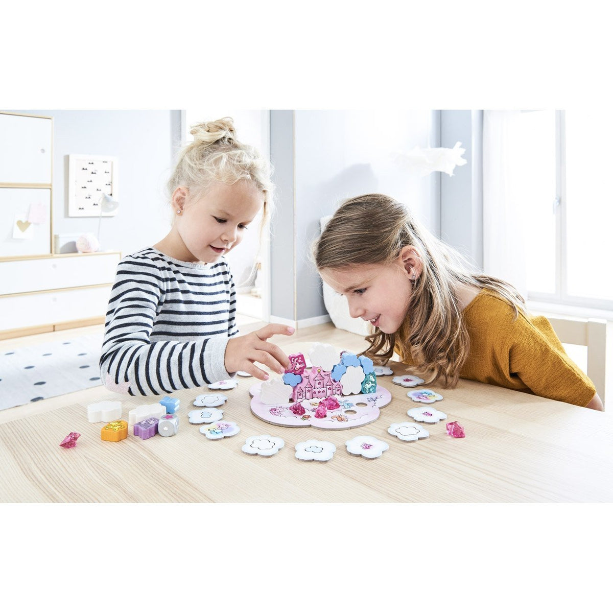 Glitterluck, Rosalie, Marvel Flower, Magic Swirl, and Stardust live in a magical castle in the clouds. Everyday friends come to visit them, but the castle is running out of space! Using clouds and magic, the unicorns gradually add more turrets to their castle. The object of the game is to collect the 10 pink crystals, stack the clouds and the unicorns on the castle in order to house all the unicorns in their new home!