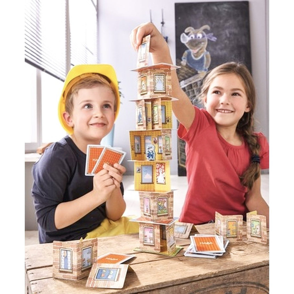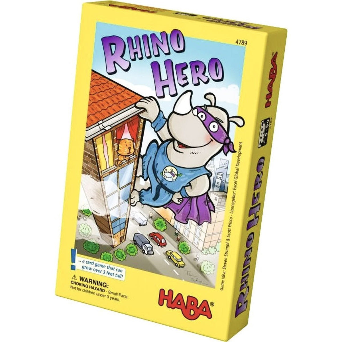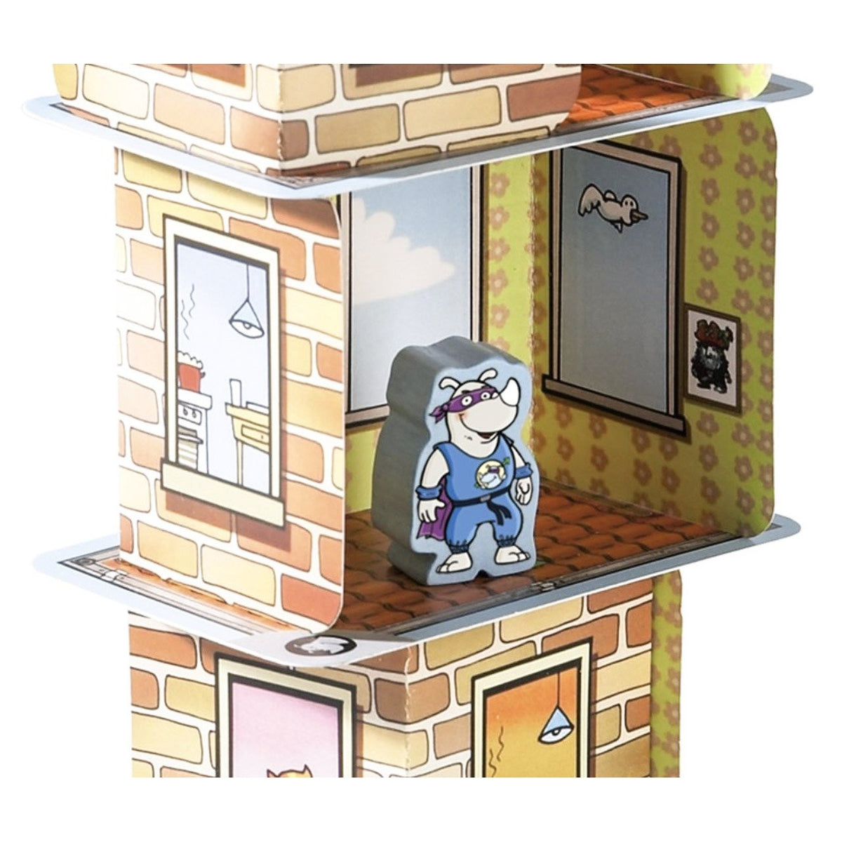 Rhino Hero is out and about climbing the wall again! The super hero fearlessly scales the highest houses looking for burglars and rogues. He's strong! He's smart! But, he's also a rhino, so he's quite heavy causing even the sturdiest of towers to wobble.