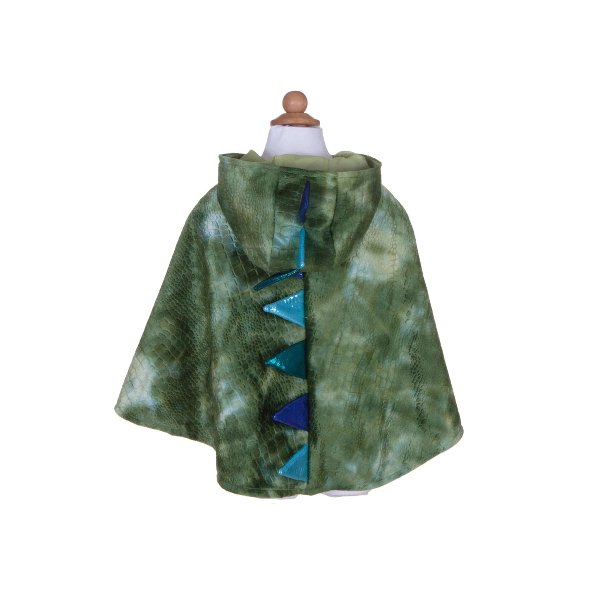 Perfectly cuddly this dragon cape is made of soft crushed velvet that has multiple tones of green for the perfect dragon look. The fabric is even designed with scales so the effect makes for a great dragon cape. The spikes are lined with foam and designed to stand up on there own. The Velcro closure at the neck, means this cape is easy to put on and take off.