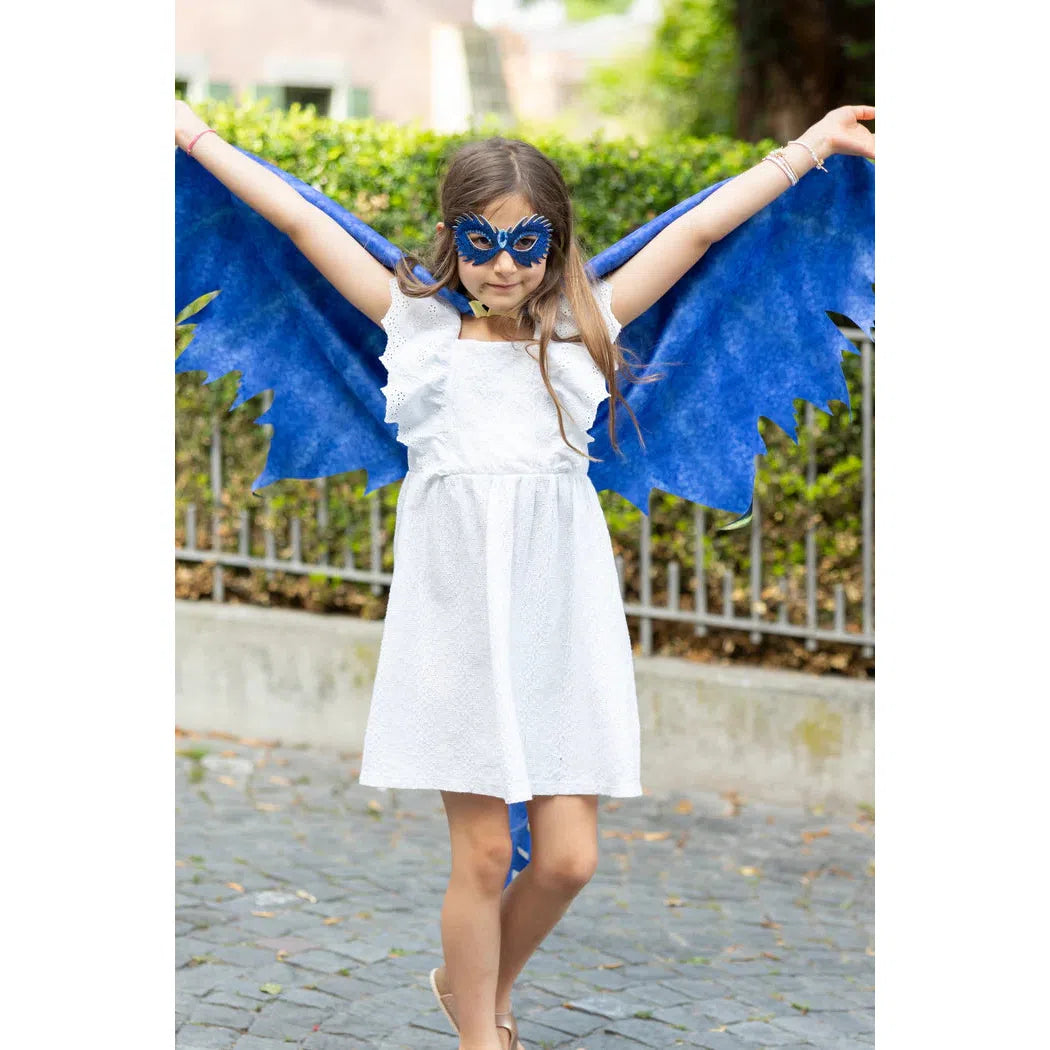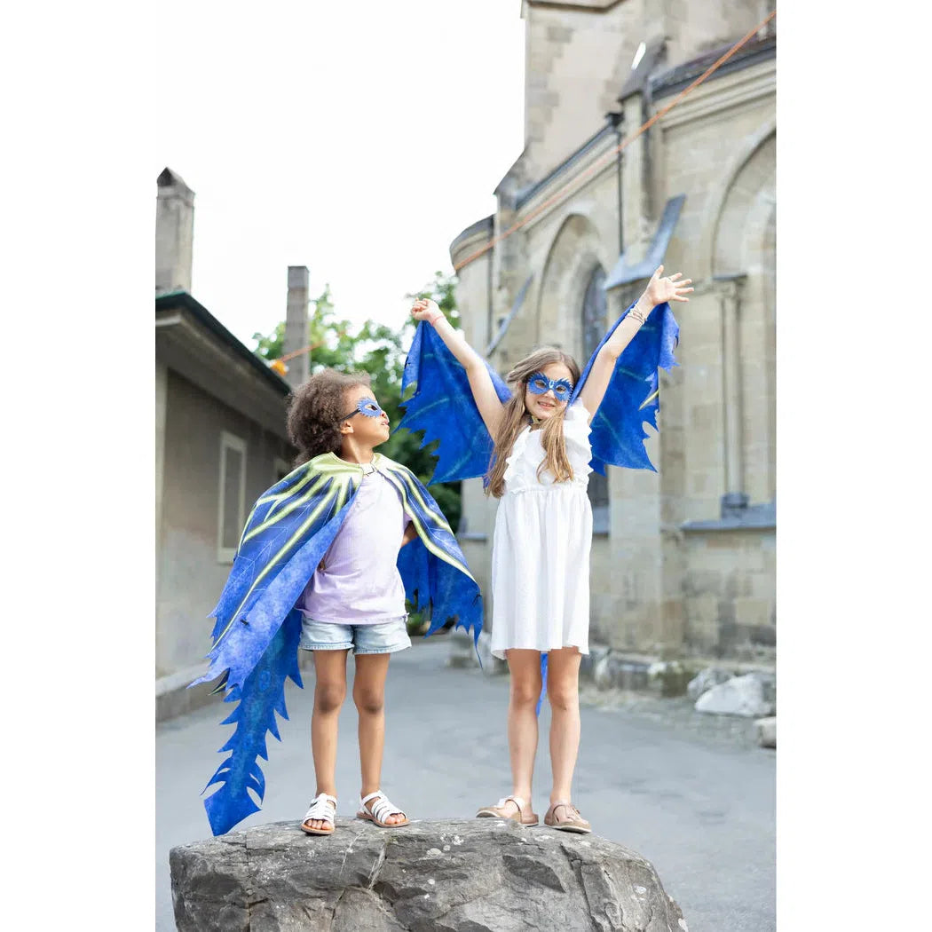 Unleash your inner dragon with the Celestial Dragon Jewel Soft Wings! These stunning wings are crafted from blue laser-cut material, featuring vibrant royal blue with intricate green detailing that adds a magical touch. The wings are complemented by a flowing tail, creating a full dragon-inspired look. To complete the ensemble, an eye mask is included, making it the perfect accessory for imaginative play and costume adventures. Whether for dress-up or a fantasy-themed event, these wings will make you feel truly legendary!