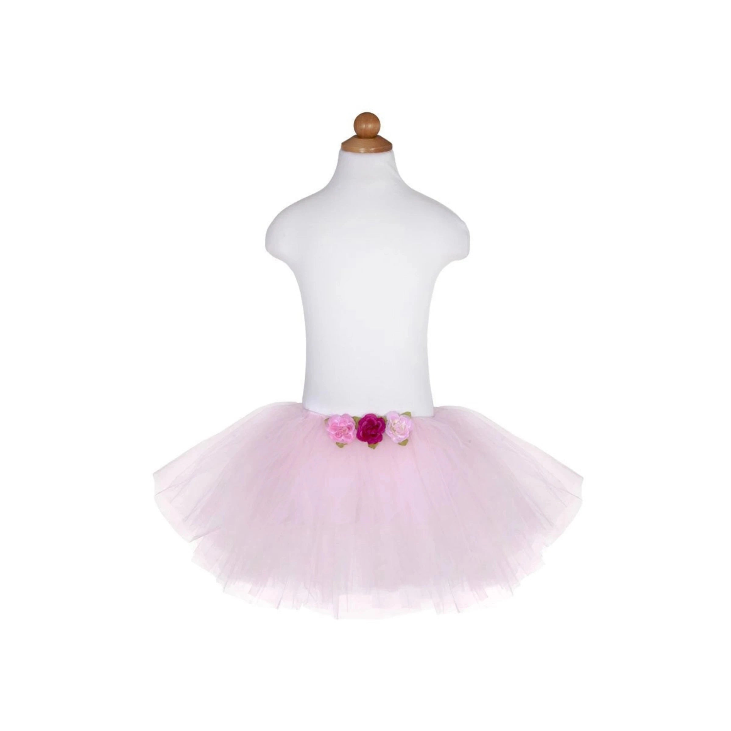 Fluffy tulle makes this adorable tutu one of a kind! The signature tulle is not scratchy, but super soft. Gathered at the waist into the 1/2" wide elastic allows for additional sizing flexibility and comfort. Silk roses at the waist add a touch of detail. These tutus are made with care in Canada, and are a favourite essential piece with all little ballerinas and fairies.