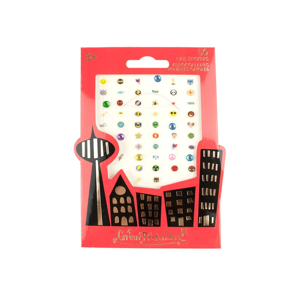 Our NEW nail stickers are made with 1 sheet of 50 stickers designed in Canada just for kids! Add a touch of superpower to your everyday wardrobe with our superhero themed nail art. This set includes superheroes, villains, rhinestones and secret life saving abilities!