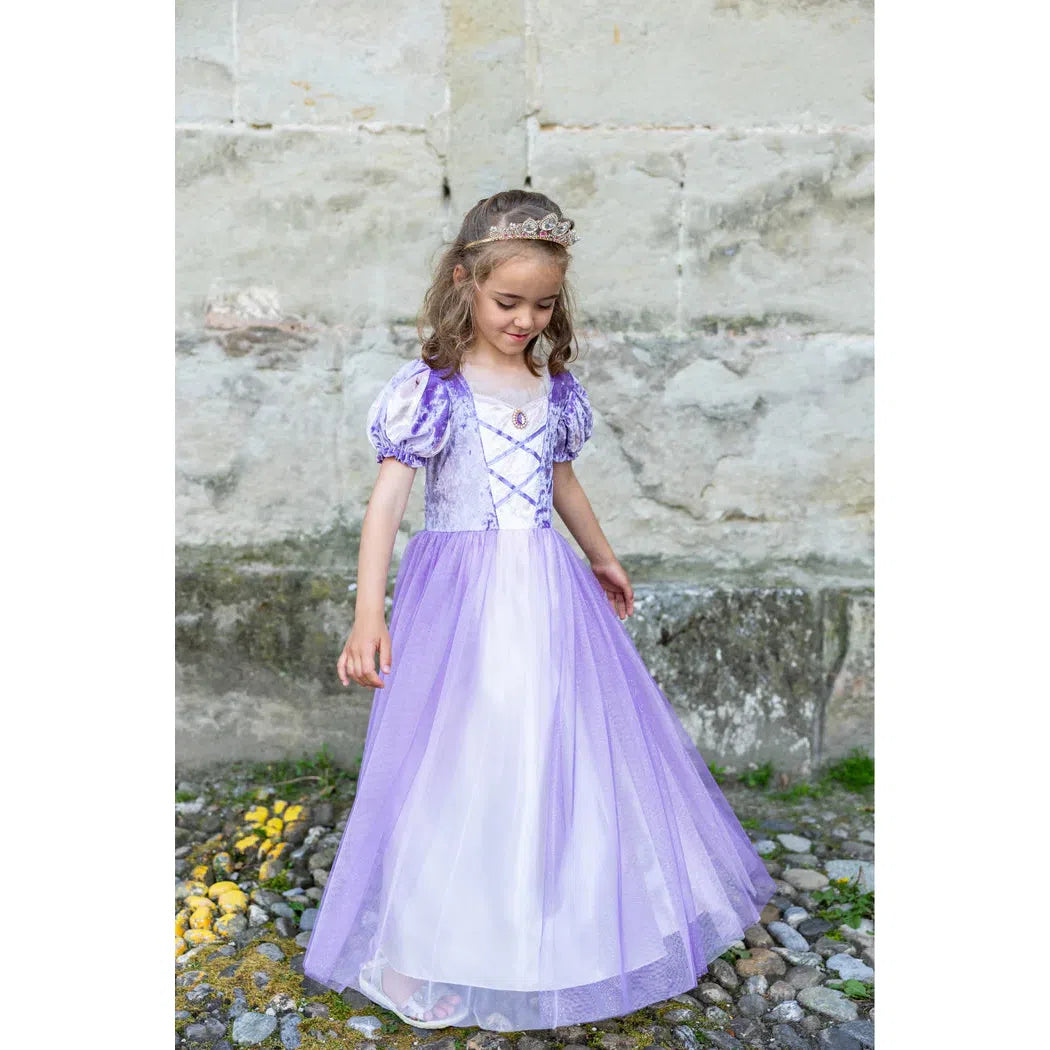 The full-length skirt is made with layers of soft tulle, adding volume and a dreamy, twirling effect that’s perfect for any princess. Whether it’s for a costume party, a special occasion, or everyday adventures, this dress is sure to make your little one feel like they’ve stepped right out of a magical tower!