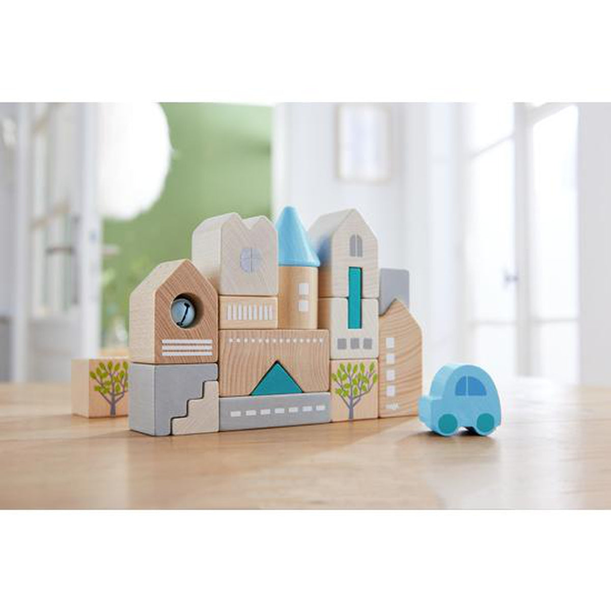The HABA company headquarters has always been located in Bad Rodach, Upper Franconia. This building block set allows you to recreate the town with its characteristic skyline. The different turrets, roofs and staircases allow young builders to vary their constructions. At the same time, the activity encourages three-dimensional thinking.
