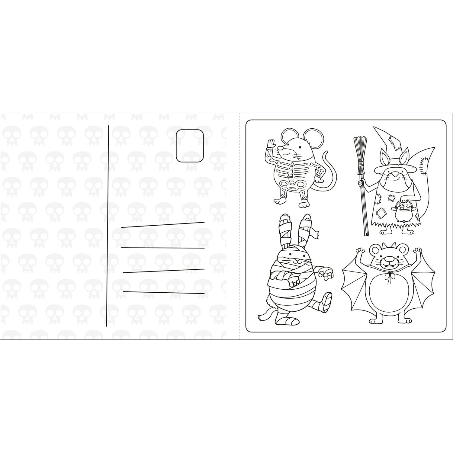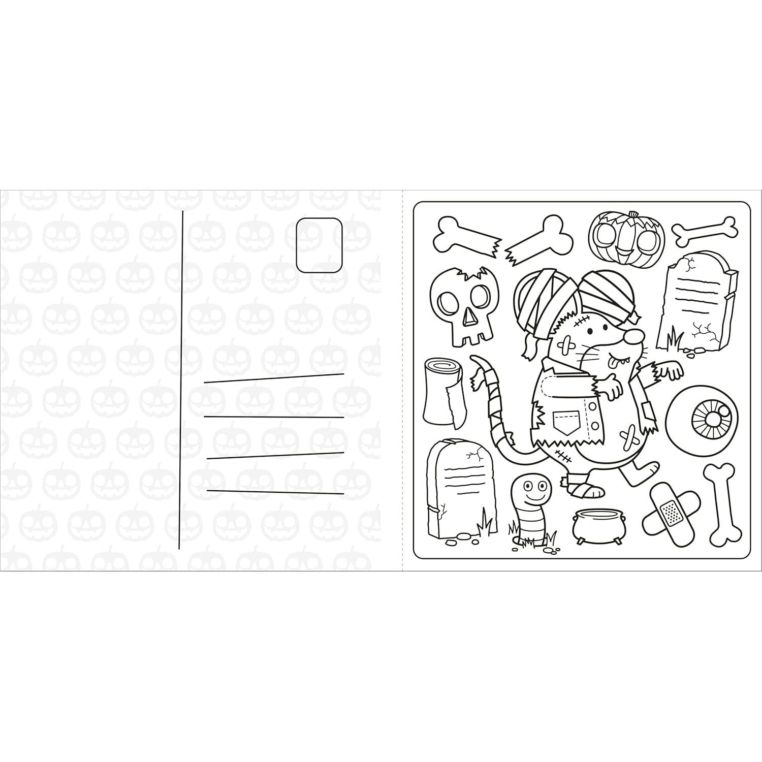 This spooky coloring book features: