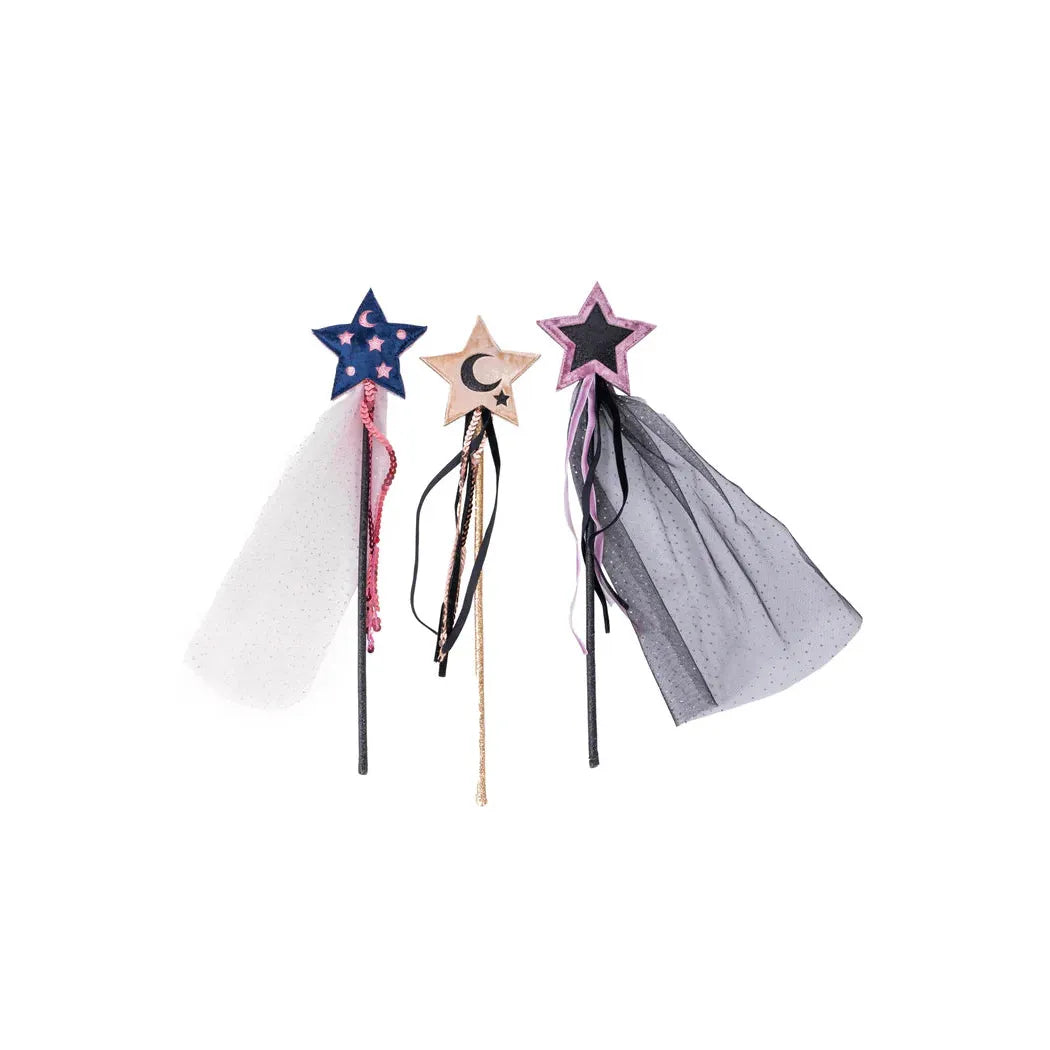 Delicate hanging sequins strings cascade from each star, adding a touch of movement and magic to every spell and twirl. With colors and textures that evoke the quiet beauty of midnight skies, these wands are perfect for witches, stargazers, and little dreamers alike.