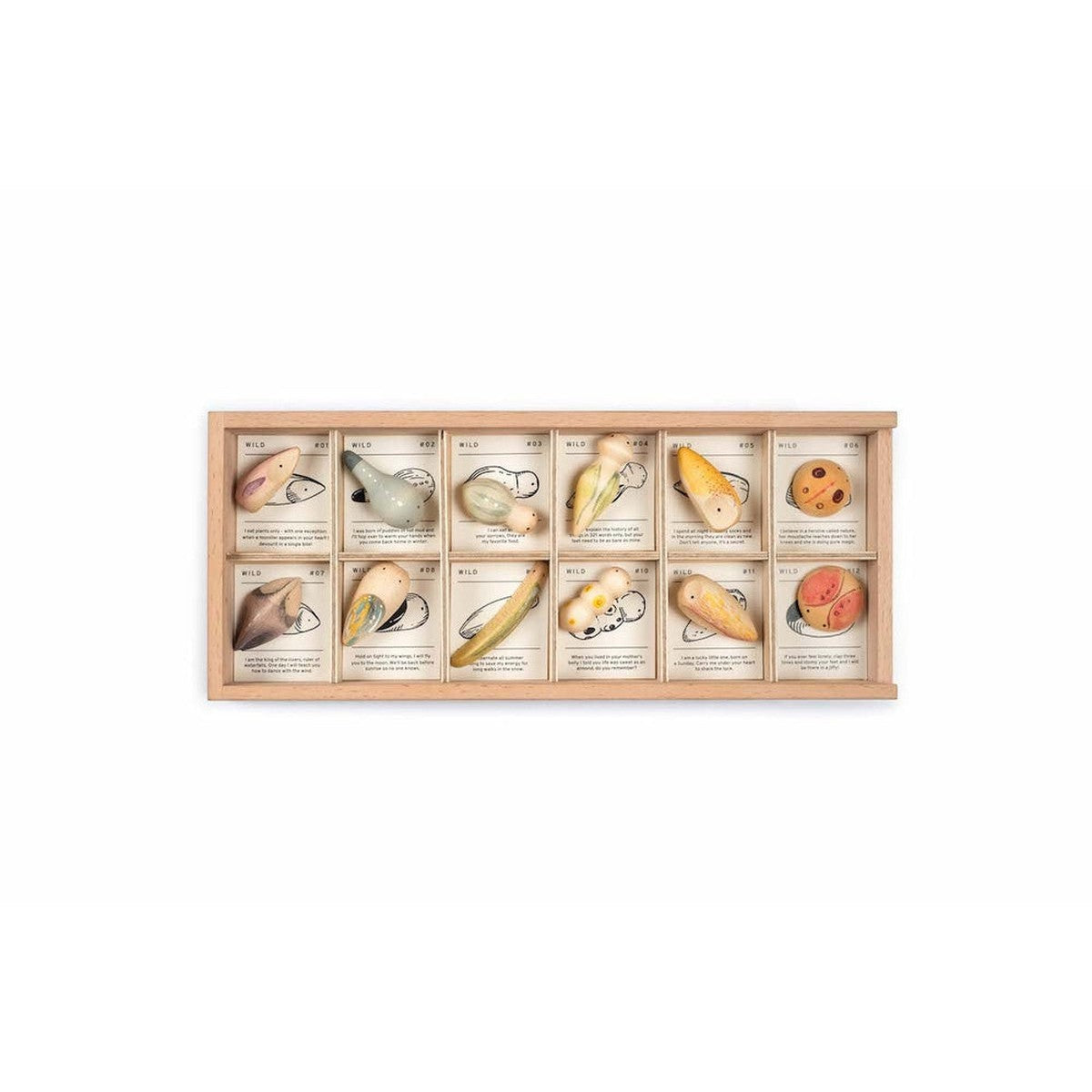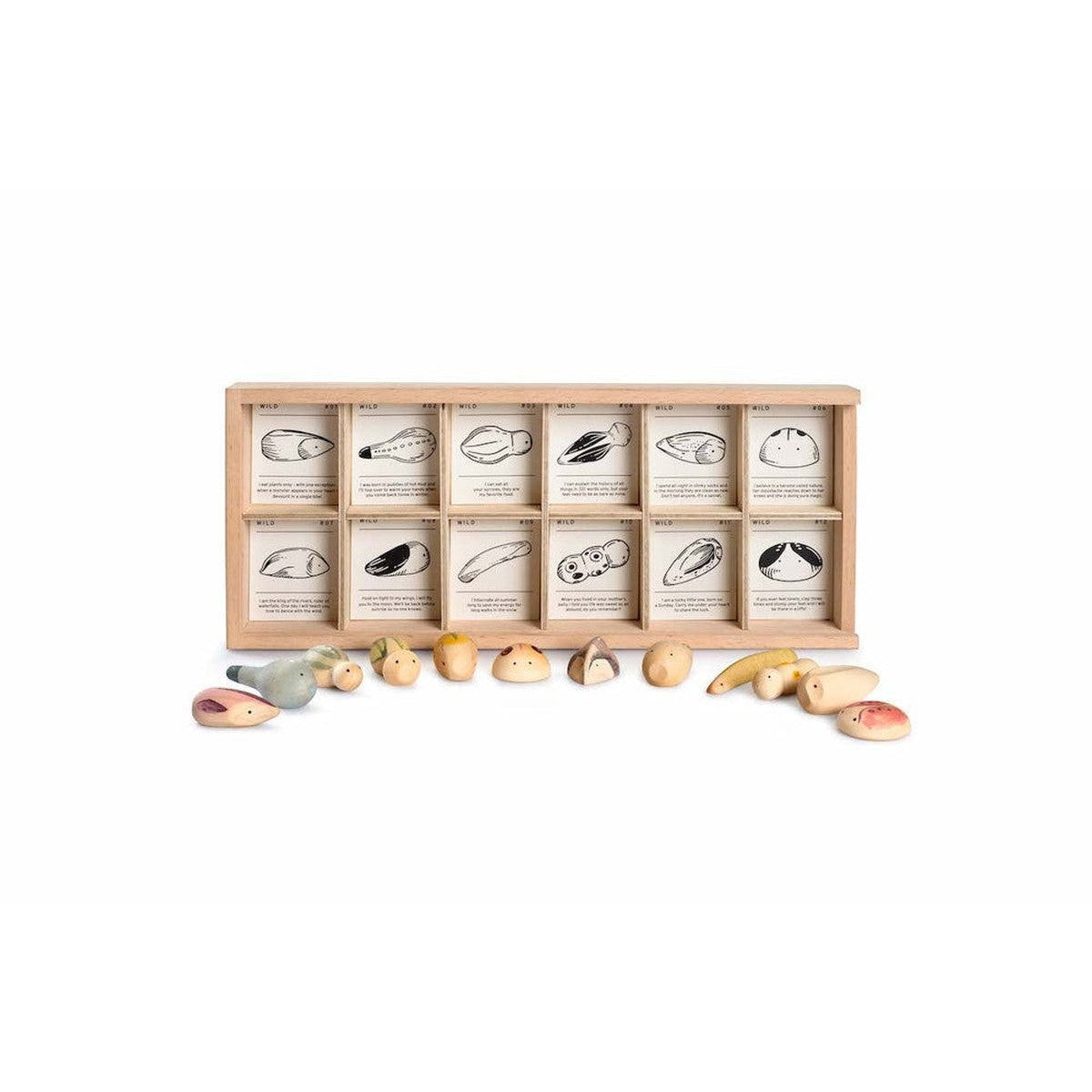 Examine the outdoors with this artistic set of figurines from Grapat. This Wild Wood set comes with a sectioned sorting tray for each individual piece. Every piece is inspired by real creatures but comes with their own unique and imaginary storyline that is on a card in each section of the box. Inspire exploration with this nature-mimicking set and compare to the crawling and flying critters that you see on nature walks.