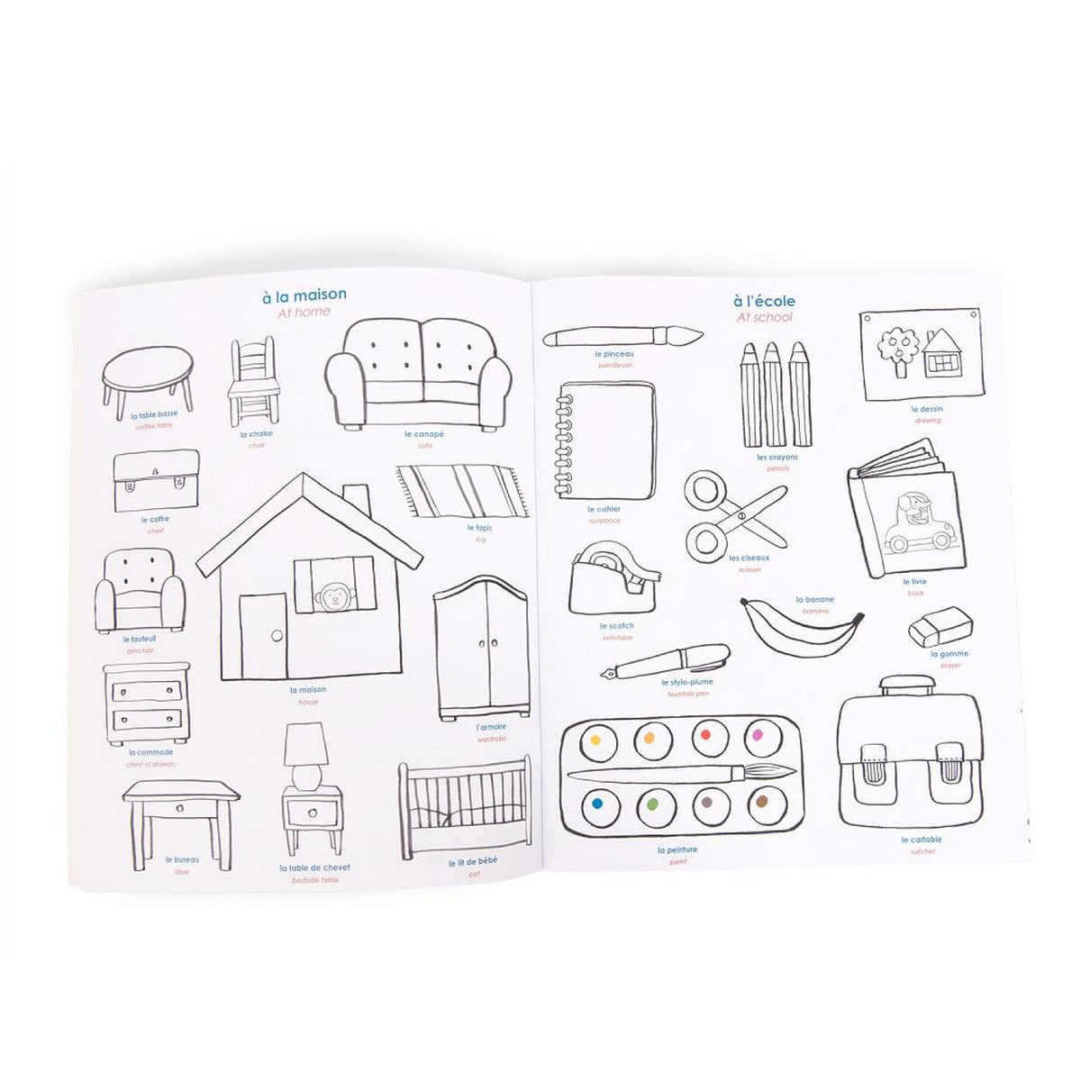 This fun activity book contains colouring pages and themed stickers with English and French words throughout to learn. There's 28 pages in total to colour and 125 colourful stickers of things such as alligators, guitars, candy canes, and more. A fun and creative way to build French and English vocabulary.