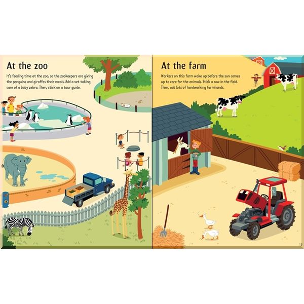 What do you want to be when you grow up? This lovely sticker book is filled with people working hard from veterinarians, to construction workers, to shop assistants. Place the stickers on the correct pages, with scenes such as "at the hospital", "in a school", or "at the fire station". Learn more about what grown-ups do all day and get inspired!