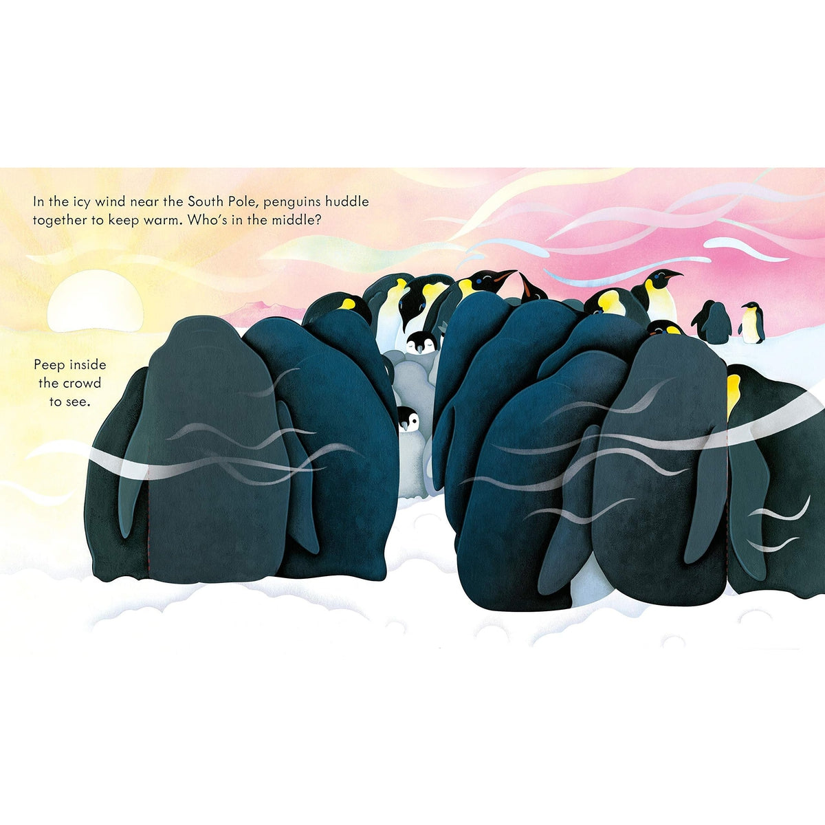 Peep under flaps and through holes to explore the snowiest places on Earth in this little wintry book. Peep under the snow to see polar bear cubs coming out of their den, seals and narwhals in the icy sea, peep behind penguins near the South Pole to meet their fluffy chicks, and peep behind the clouds to see the Northern Lights glowing in the sky. Another, very topical addition to add to the award-winning peep inside series. Sweet first discovery of Arctic/polar animals encourages young children to have a love of nature and snowy places - vital to the environmental concerns of today. Simple child-friendly text and irresistibly designed flaps encourage children to actively enagage with the subject, building their learning confidence.
