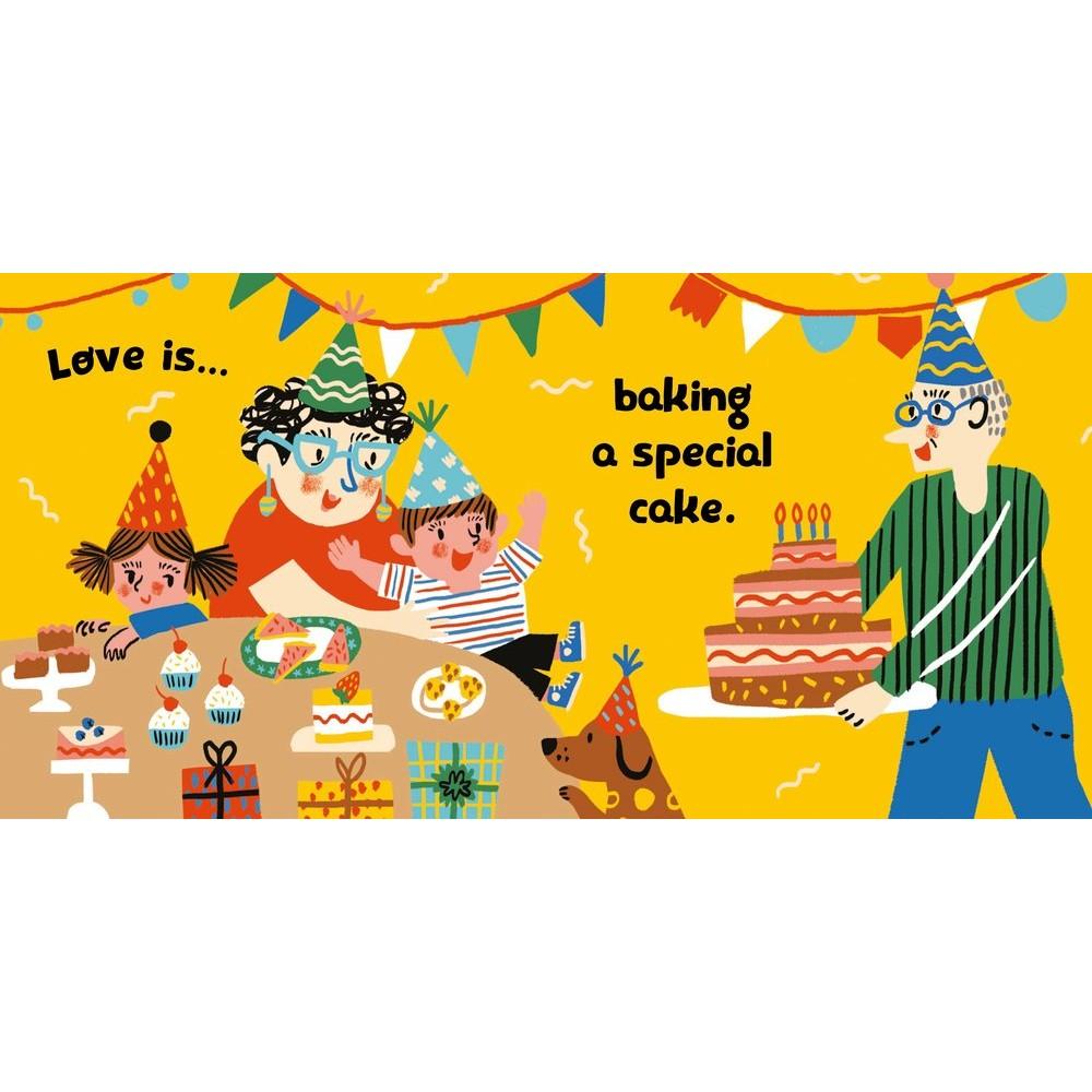 Love is baking a special cake. Love is lending a helping hand. Love is reading one more book. In this exuberant board book, many different families are shown in happy activity, from an early-morning wake-up to a kiss before bed. Whether a child has two moms, two dads, one parent, or one of each, this simple preschool read-aloud demonstrates that what's most important in each family's life is the love the family members share.