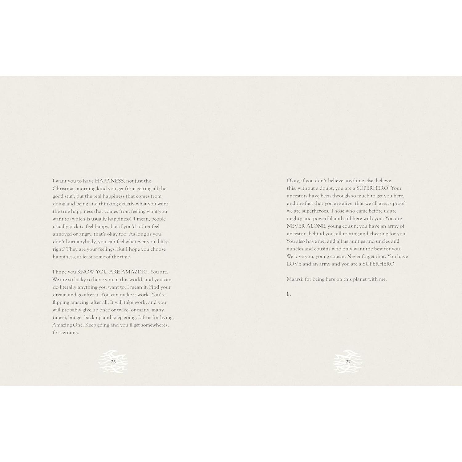 Including contributions from activist Autumn Peltier, singer/songwriter Tanya Tagaq, hockey player Ethan Bear, Governor General's Award–winning author David A. Robertson, artists Chief Lady Bird and Christi Belcourt, illustrator Mangeshig Pawis-Steckley, and dozens of others, this beautifully collaborative collection urges readers to think about who they are, where they come from and where they're going, with a warm familiarity that will inspire you to see yourself and your community with proud eyes.