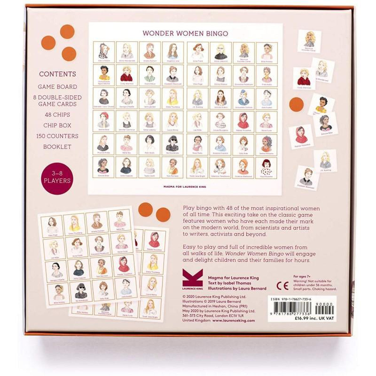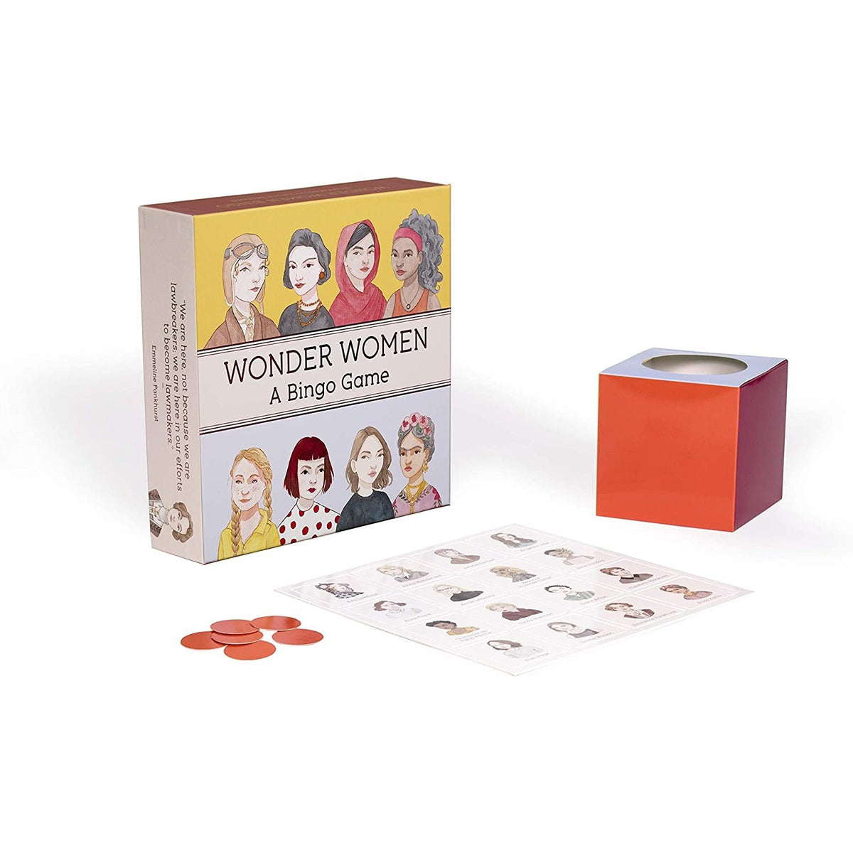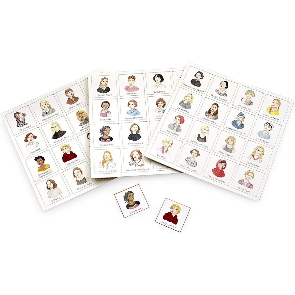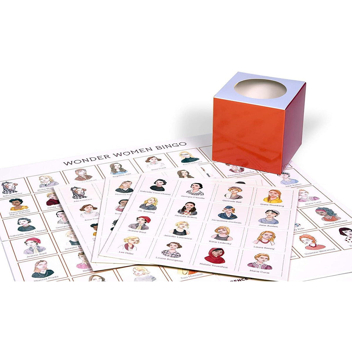 Travel across the world and across history with this wondrous bingo game full of powerful and inspiring women! From Simone Biles, to Amelia Earhart, to Malala Yousafzai, to Valentina Tereshkova, Wonder Women Bingo features 48 illustrations of women who have left a lasting mark on the world. Learn as you play with a full illustrated booklet that contains short bios about each of these influential women.