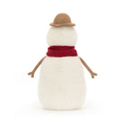 Jesse Snowman has fuzzy cream fur, cord stick arms with textured ends and a suedette hat with a notch in the brim. Jesse wears a long scarlet scarf, wrapped twice around for good measure. With safe stitch buttons, a weighted base, a cord carrot nose and a cheerful grin, this snowman is pretty magical.