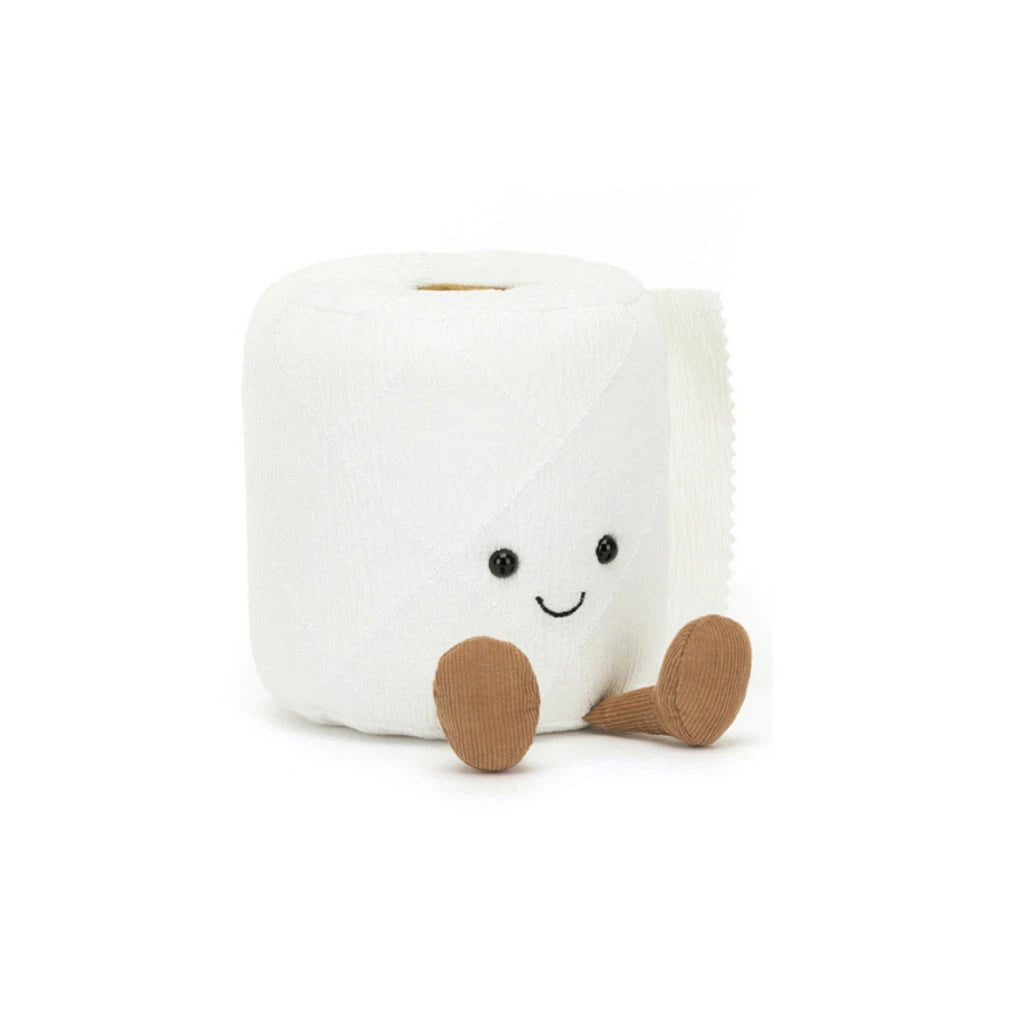 Amuseables Toilet Roll is the ultimate cushioned comfort. Textured paper with stitched quilting detail is wrapped around a suedette tube, and finished with fine cord legs, a stitched smile, and a perforated edge.