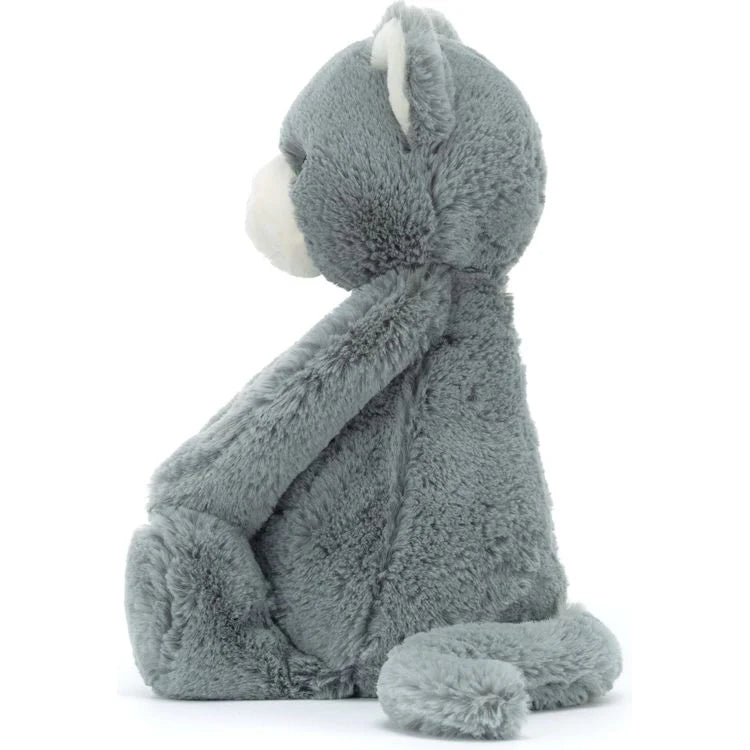 So soft and ever so pretty, Bashful Kitten is a brilliant feline friend. This dreamy cat has cloud-soft grey fur with a cream muzzle and pale pink suedette nose. With a long, curled tail and sweet, stitched smile, this kitten adds joy to every day.