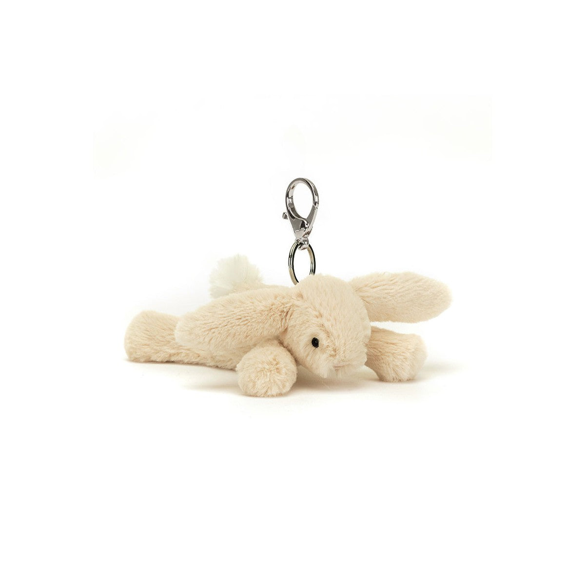 As soft and calming as a scoop of oatmeal, it's the Smudge Rabbit Bag Charm! This lop-eared bunny has soothing beige fur, a pompom tail and a gentle stitch face. With a silver claw clip and Jellycat tag, this bunny will bounce along by your side!