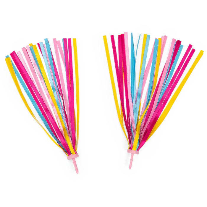 Stand out from the crowd and decorate your bicycle or scooter with these fun multicoloured streamers. Easy to install, just clip into the ends of your handlebars and you're ready to parade around town!