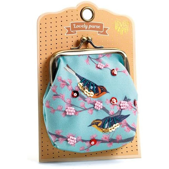 Keep your precious coins safe in this lovely little coin purse from Djeco. A beautiful bird design with gems and beads and a metal clasp.