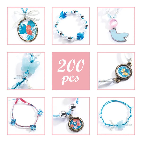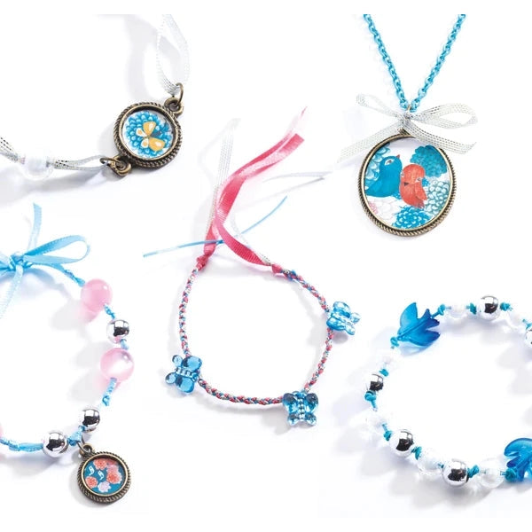 This beading kit is packed with beautiful supplies to inspire your kiddo's creativity. Included are a selection of plastic pearl beads in different colours as well as bird and butterfly charms. There's enough colourful cord for you to make jewelry and accessories for you and your friends.