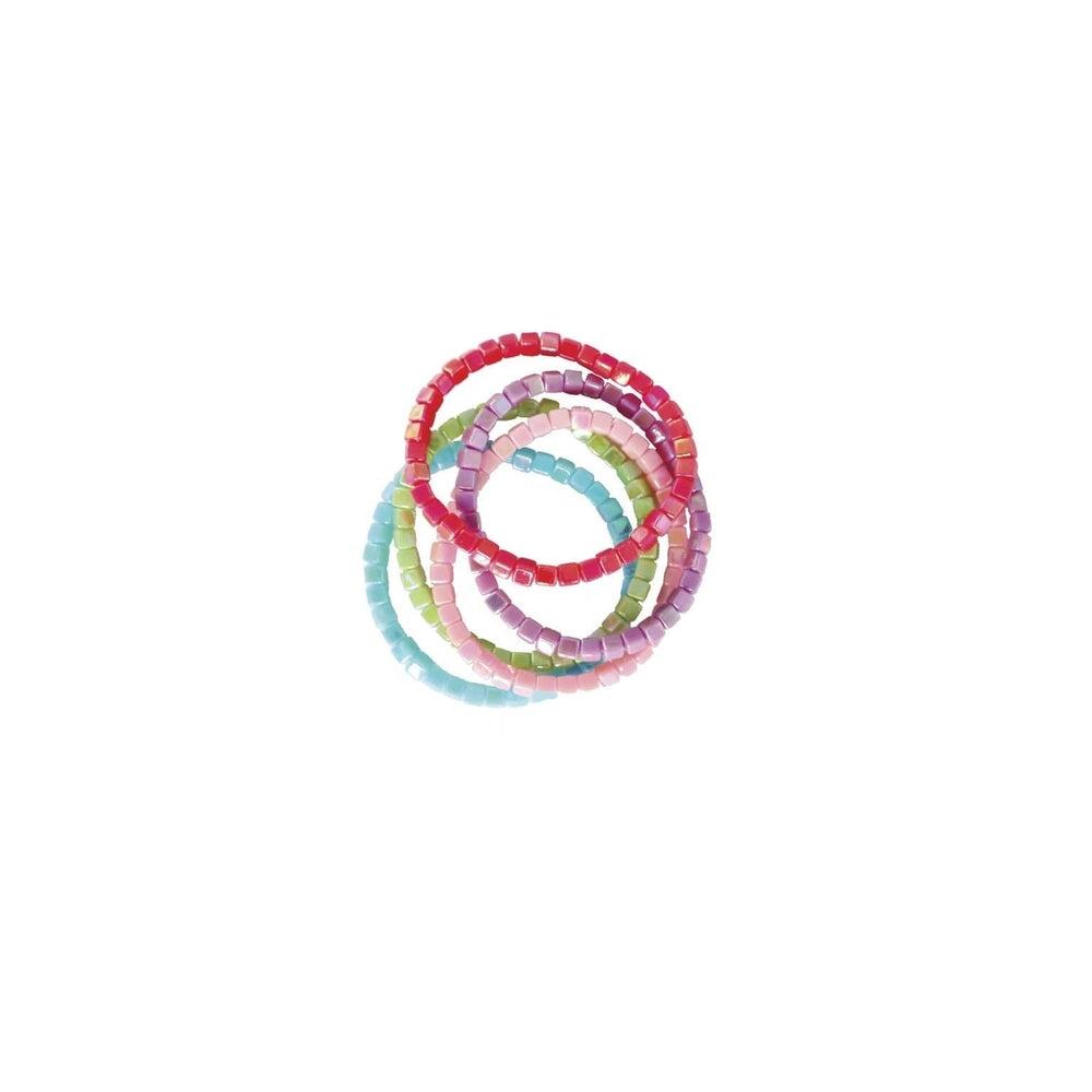 Mix-n-match these colourful square-beaded bracelets or wear all 5! This set of 5 piece beaded bracelets fit nicely on little one's wrists and are super fashionable in rainbow colours.