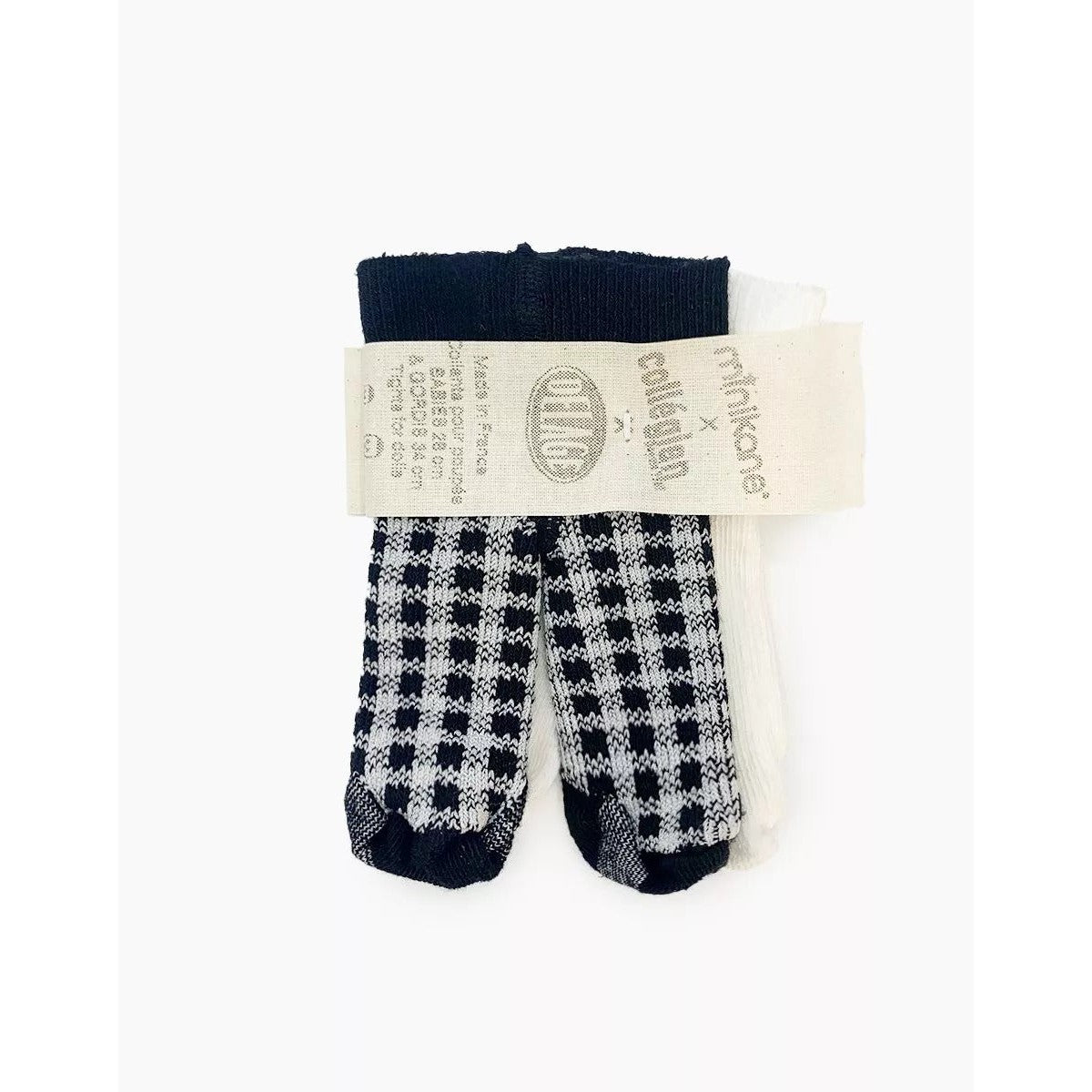Minikane gordis pack of 2 tights in snow white and charcoal black and checkered