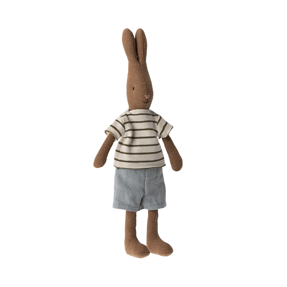 Maileg rabbit size 1, chocolate brown, striped blouse and shorts