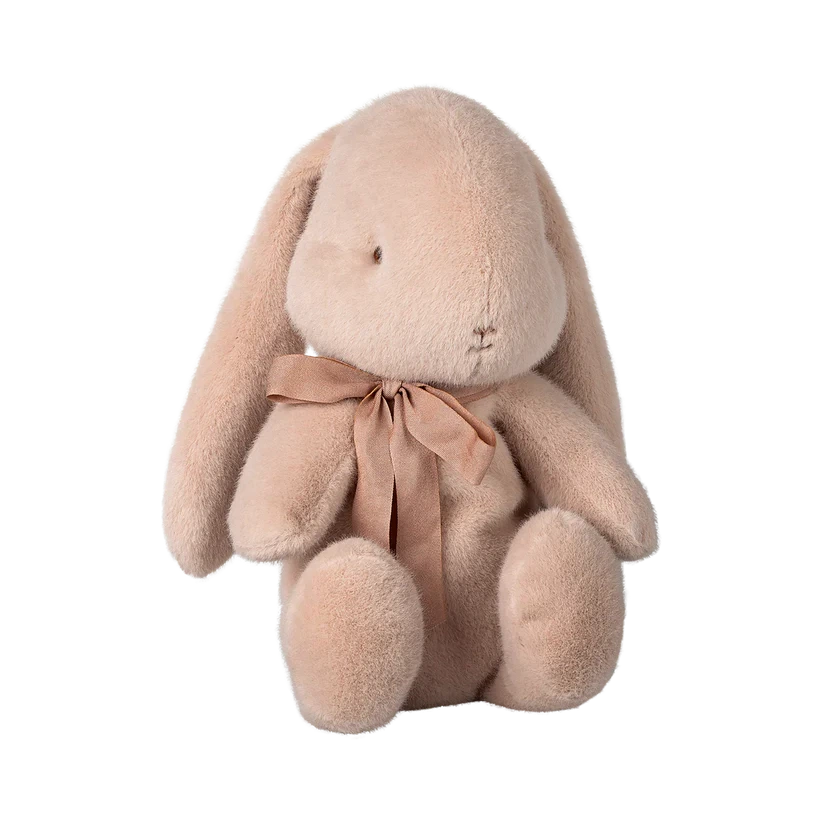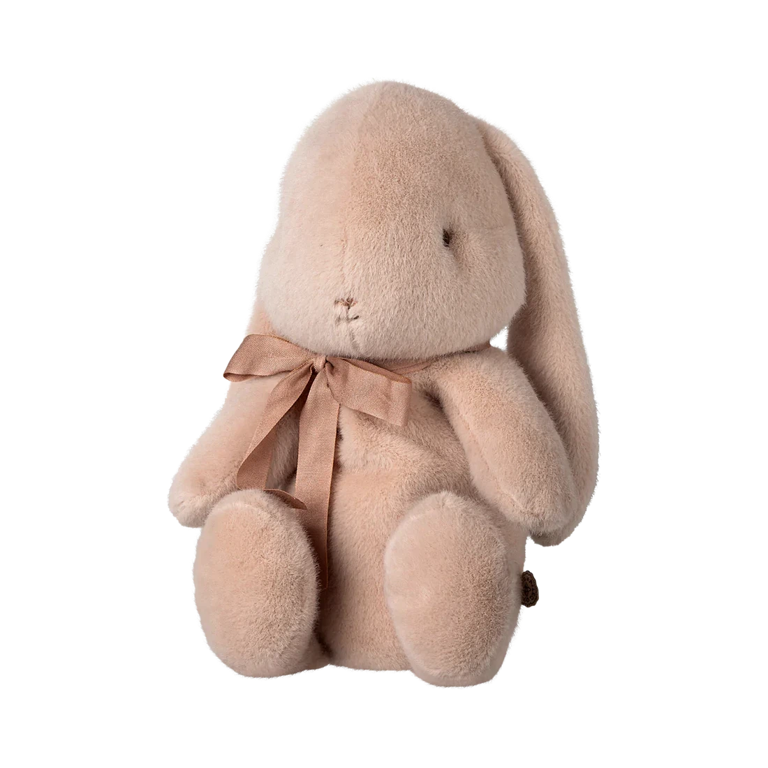 This bunny comes in very soft and unique plush fabric. It has a beautiful bow around the neck. It has a very sweet look and will soon be someone's very best friend.