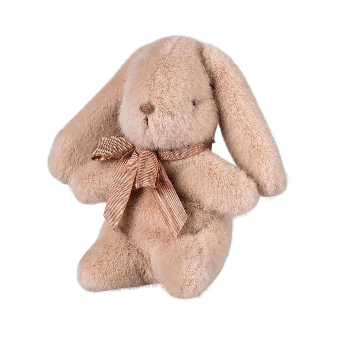 This bunny comes in very soft and unique plush fabric. It has a beautiful bow around the neck. It has a very sweet look and will soon be someone's very best friend.