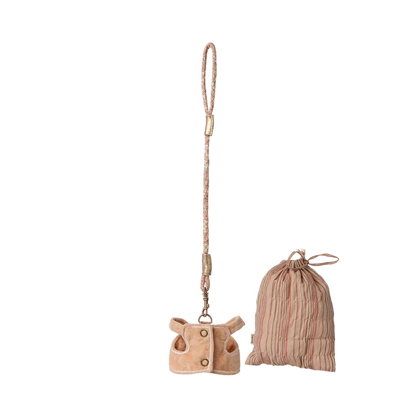 If you want to bring your Sleeping bunny out for a little walk you need a harness and leash. This little 2 piece set is packed in a small fabric bag you can use for storing the accessory when not needed.