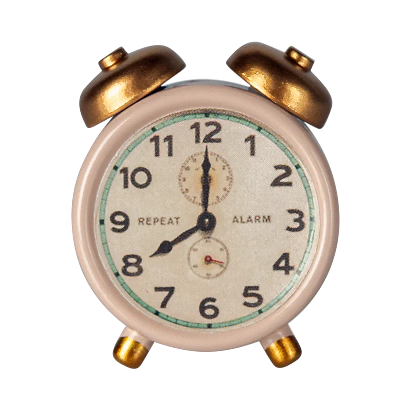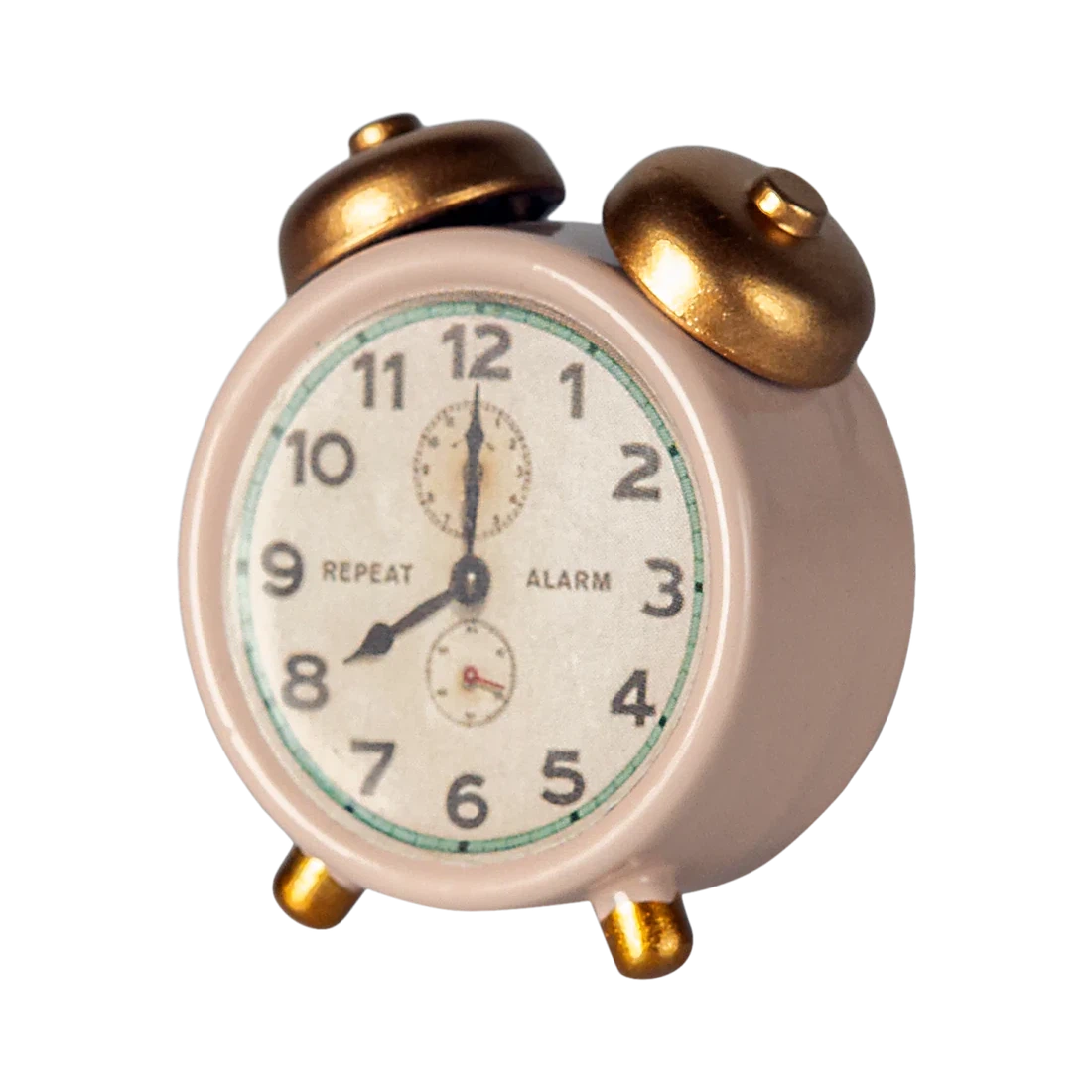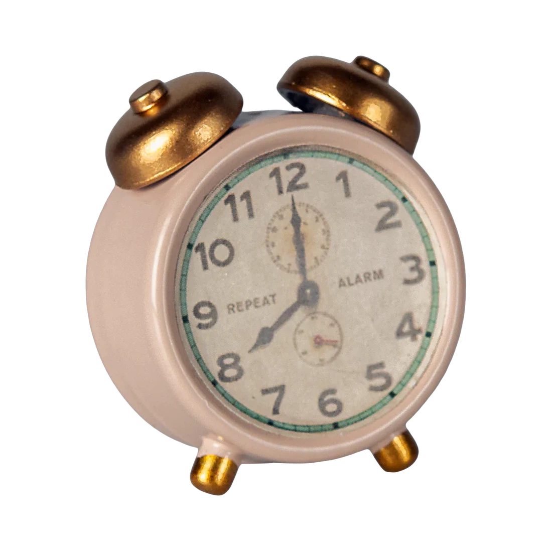The bell rings and a new day of adventures starts. The small alarm clock is made in metal and with lots of small details.