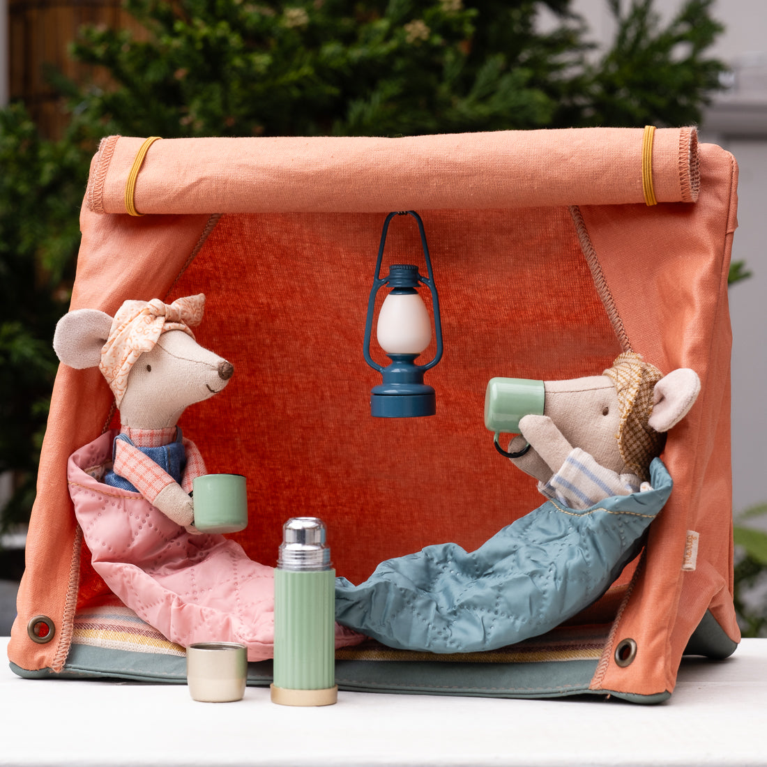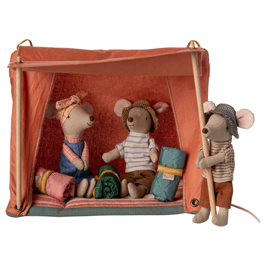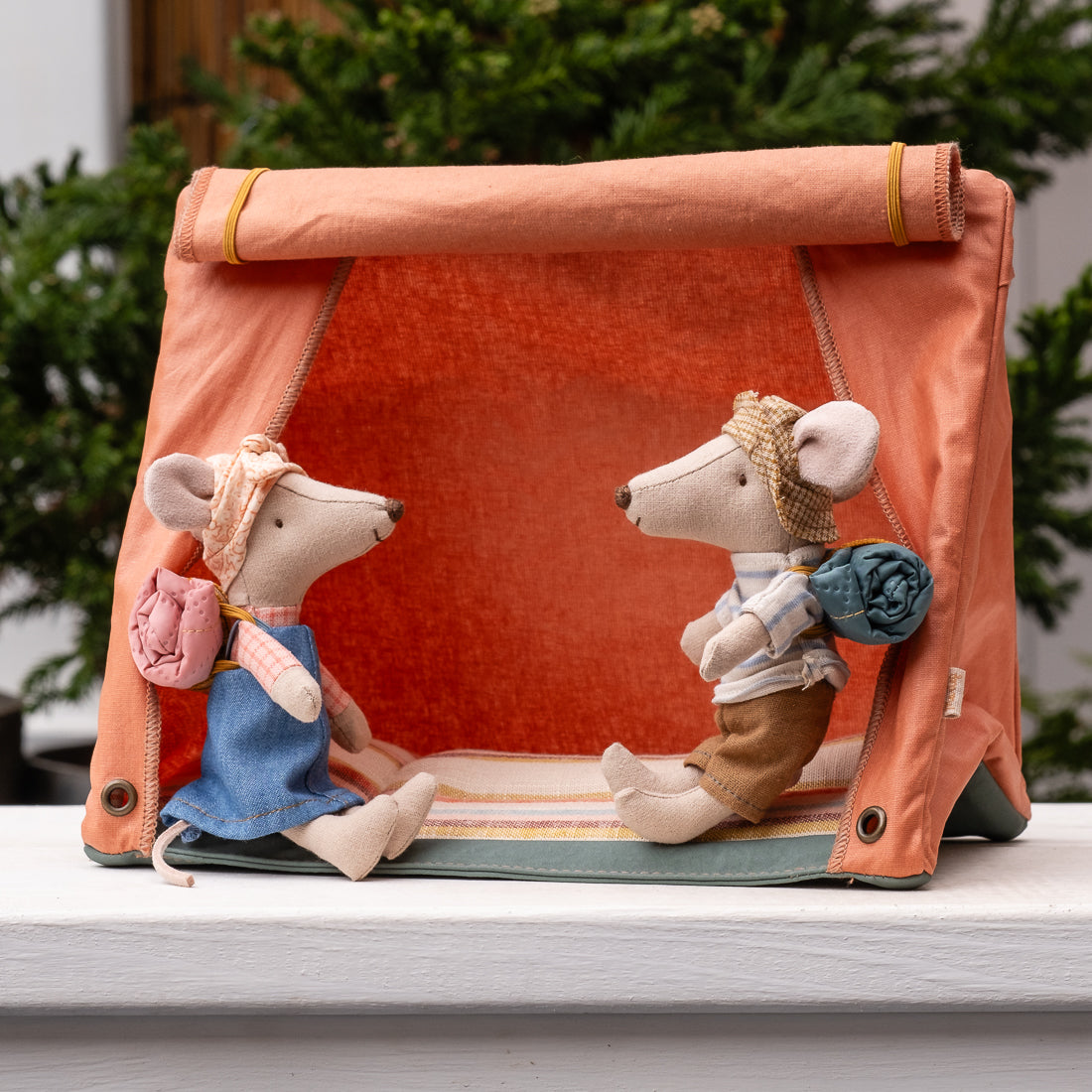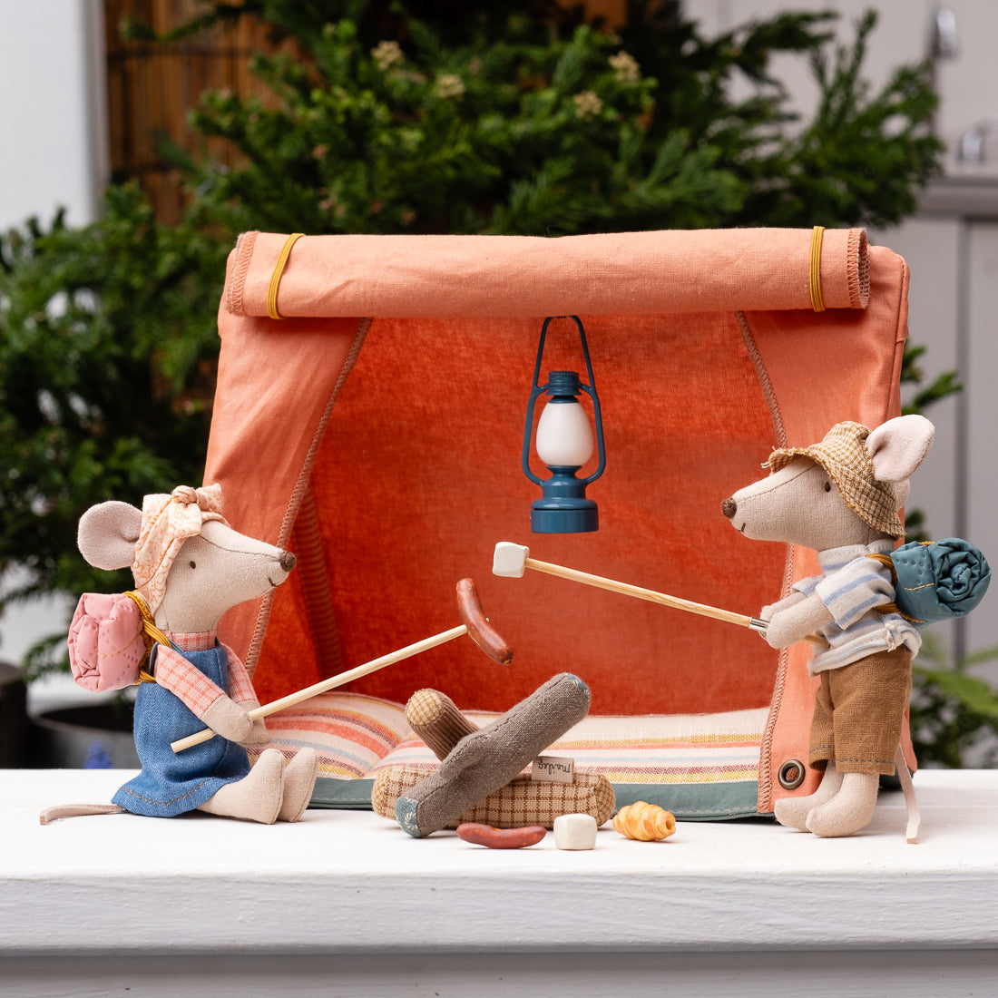 Take your mice for a sleepover in the fold-up tent. The wooden sticks can hold the tent door up and give shelter from the rain. The outer fabric has a coated surface for a more authentic look. Remember to ask them to bring their sleeping bags.