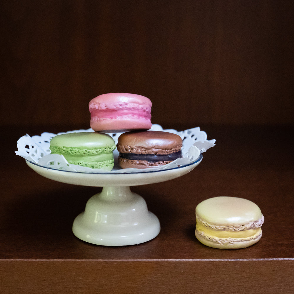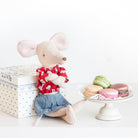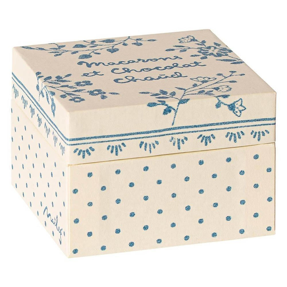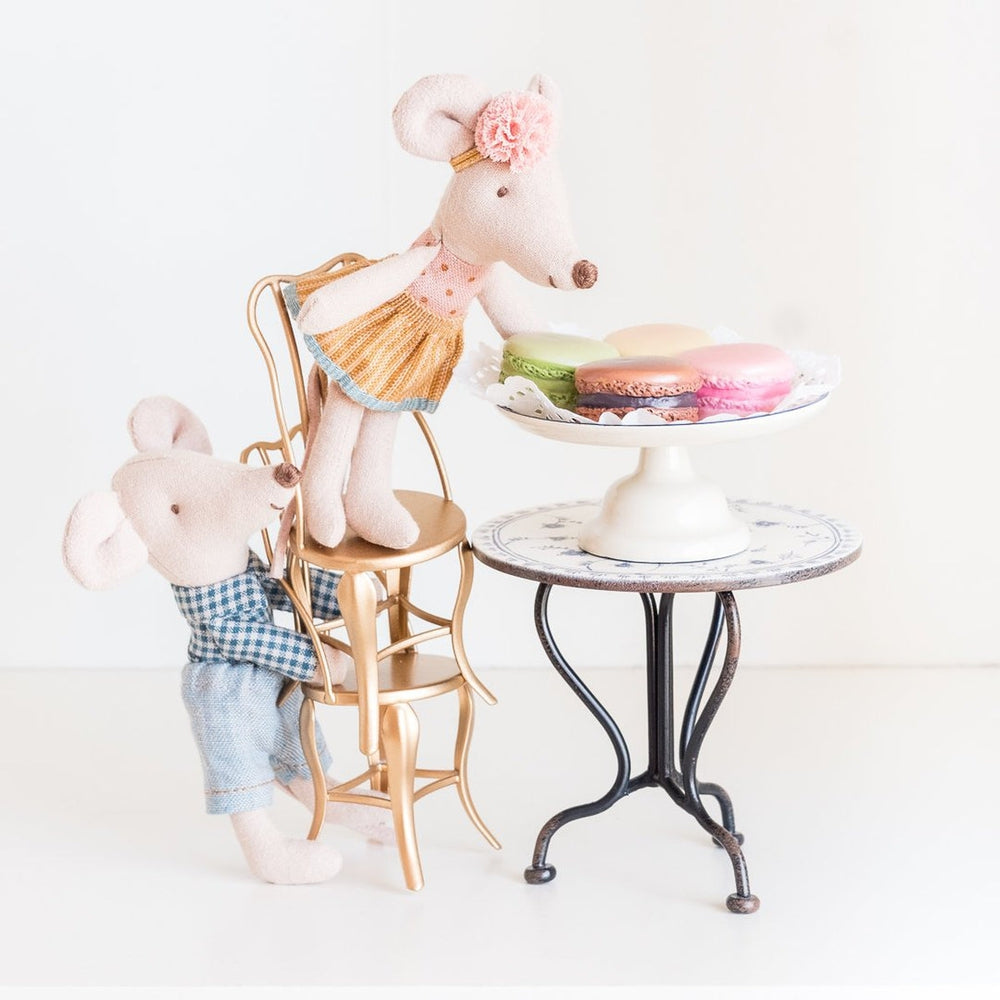 A french delicacy for your Maileg Pals! A tasty treat or a colourful decoration essential to any coffee table, these delicious macrarons on top of a a hand painted cake stand come with decorative napkins in an adorable small box!